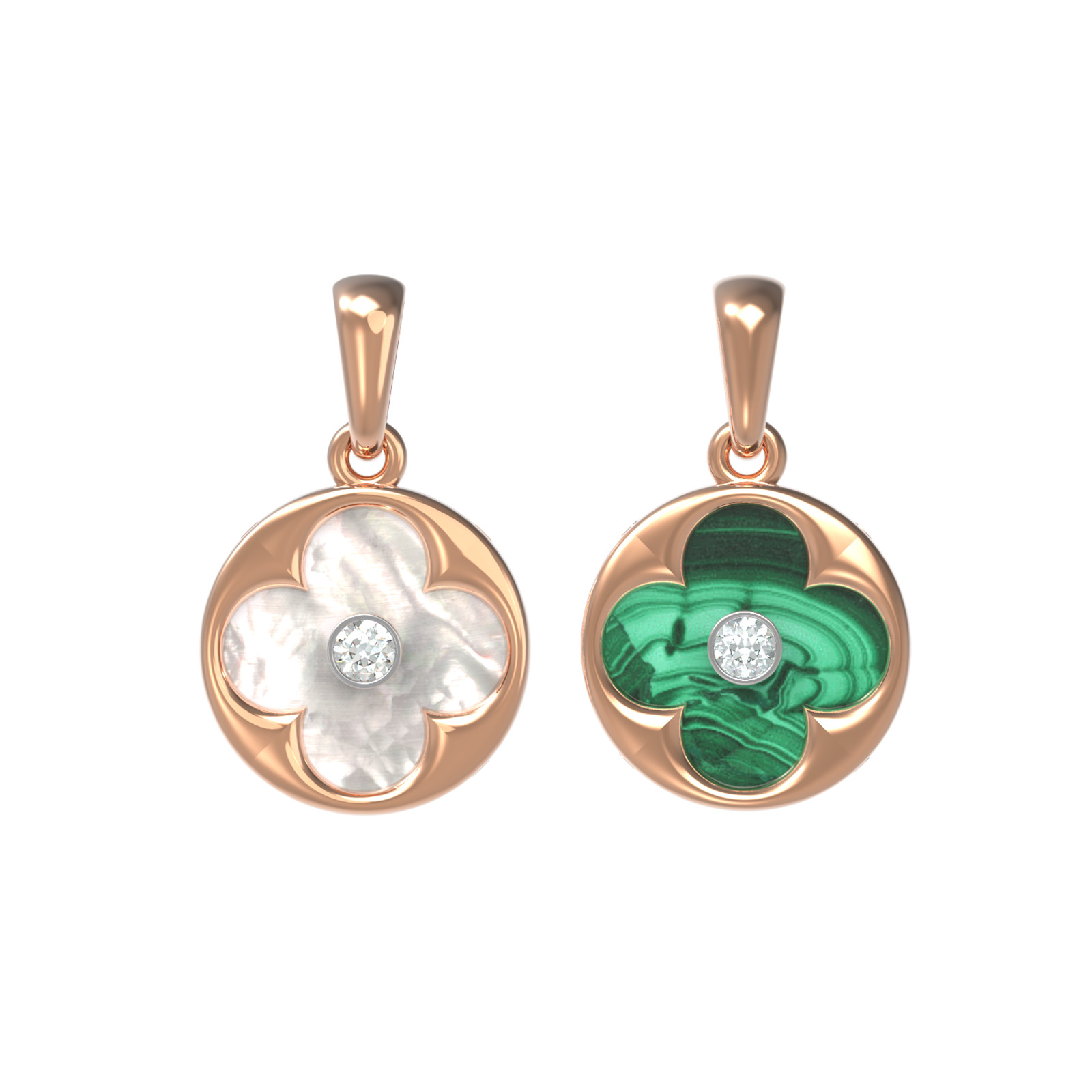 Подвеска из золота c бриллиантами, малахитом и перламутром
