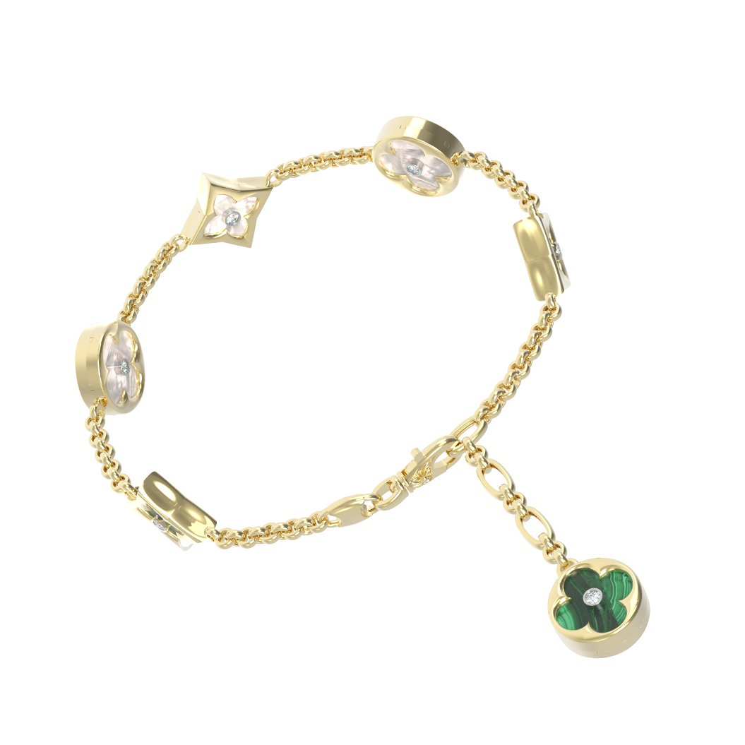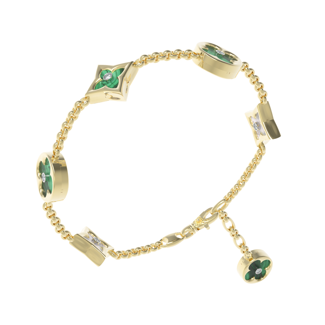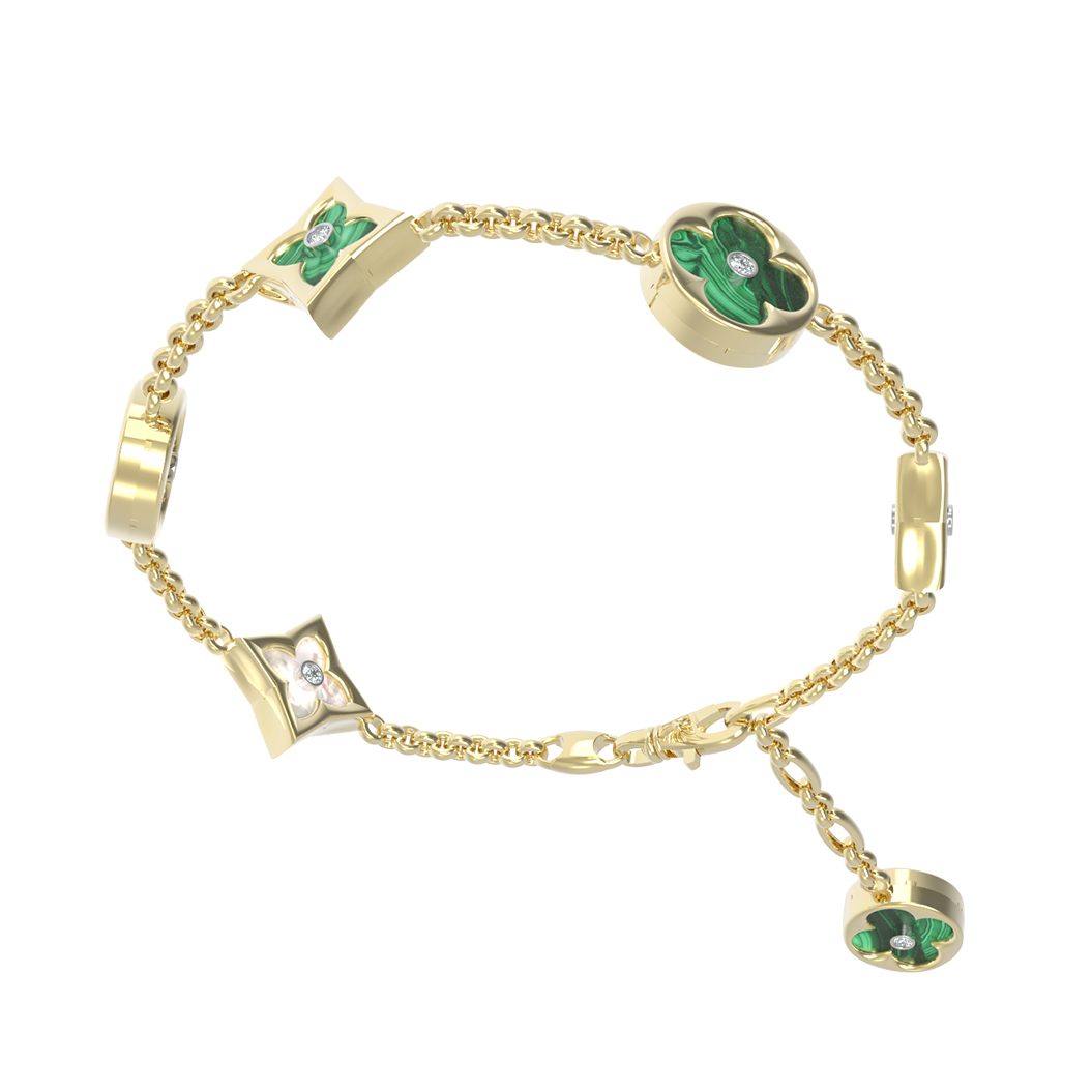 Браслет из лимонного золота c бриллиантами, малахитом и перламутром