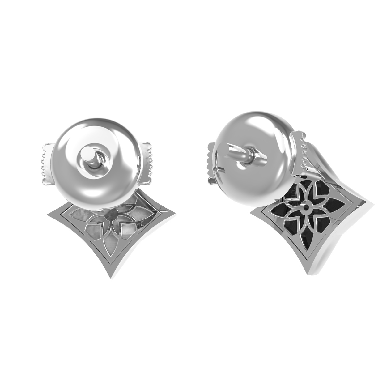 Серьги из белого золота c бриллиантами, ониксом и перламутром