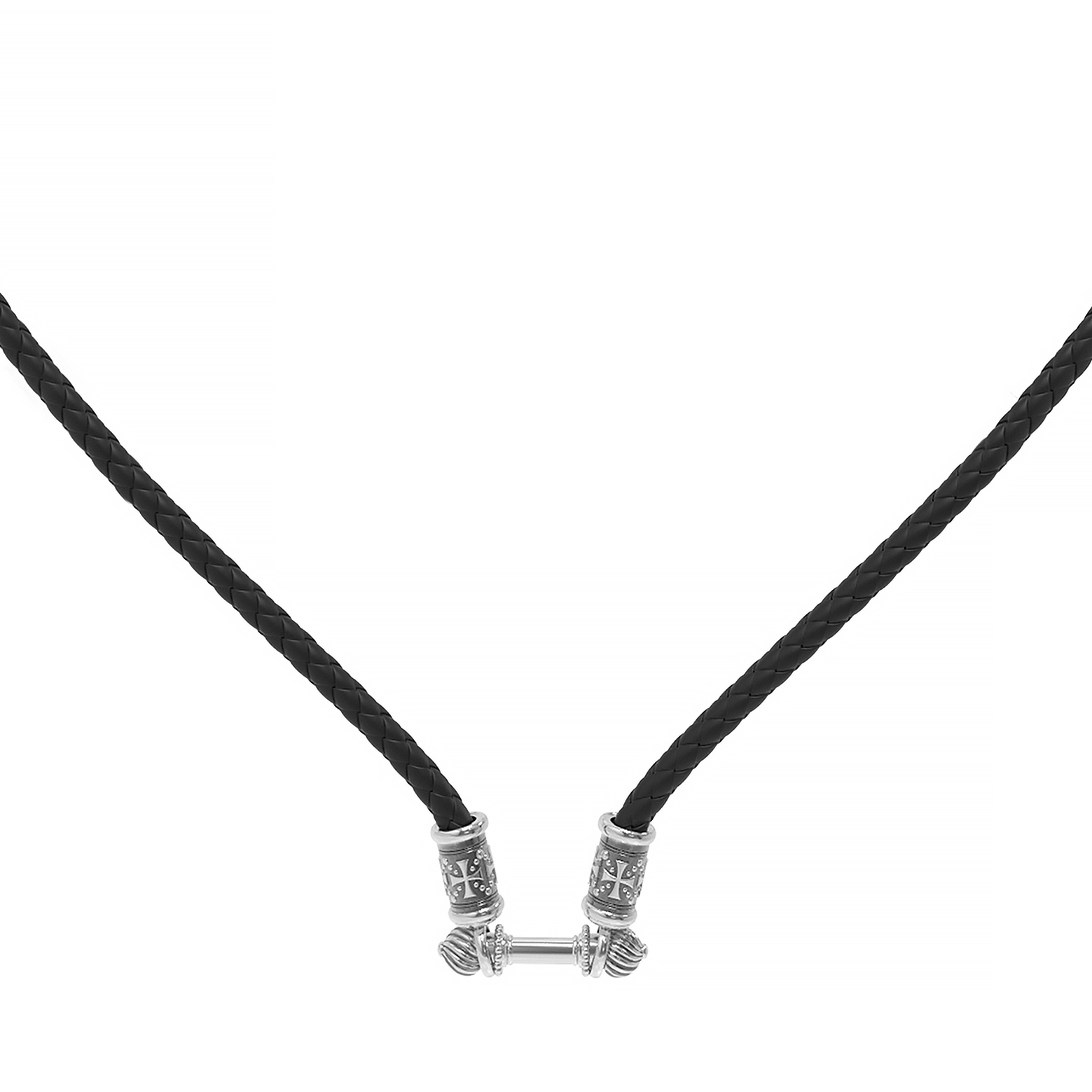 Шнурок кожаный из белого золота c кожаным шнурком
