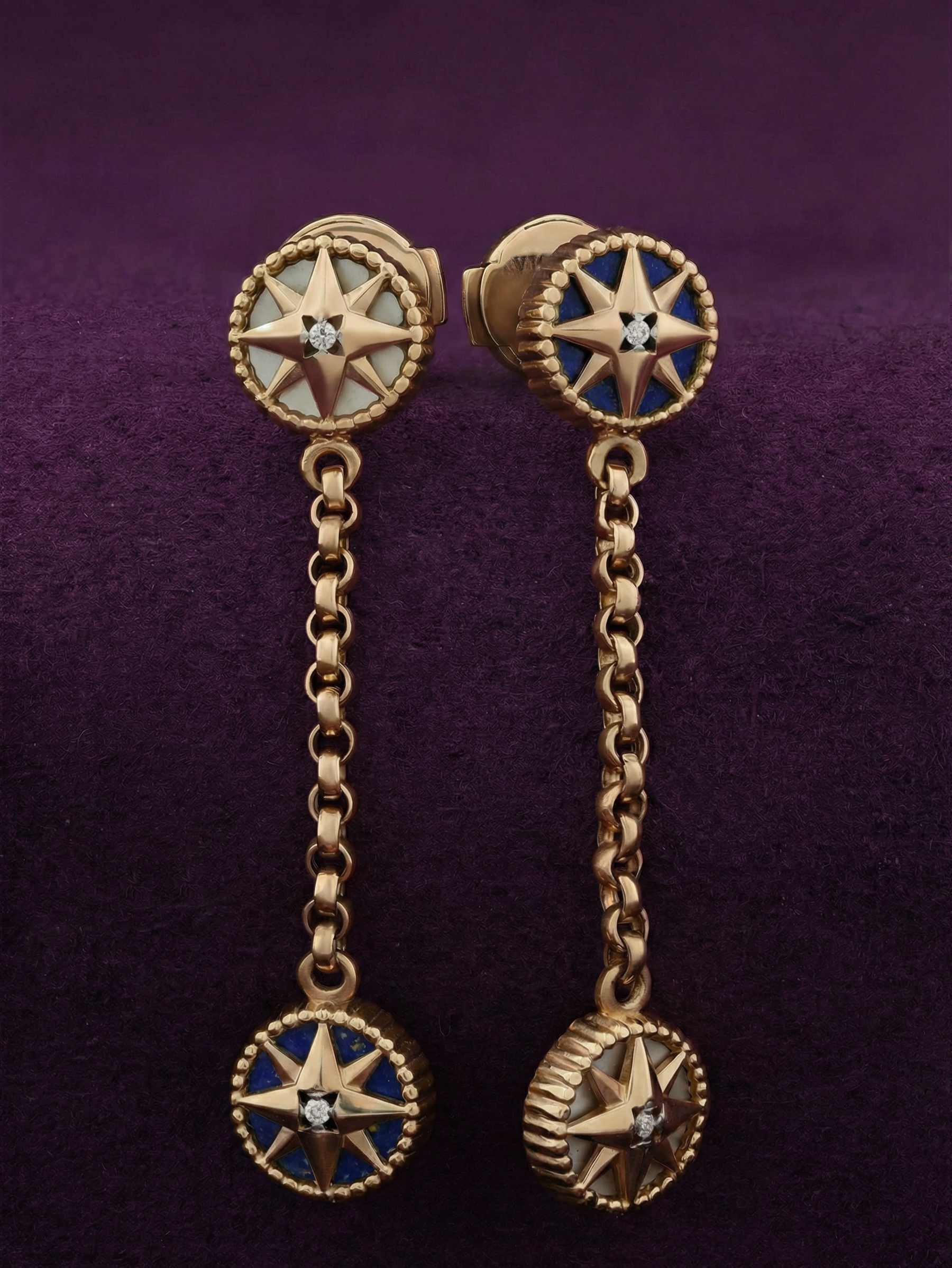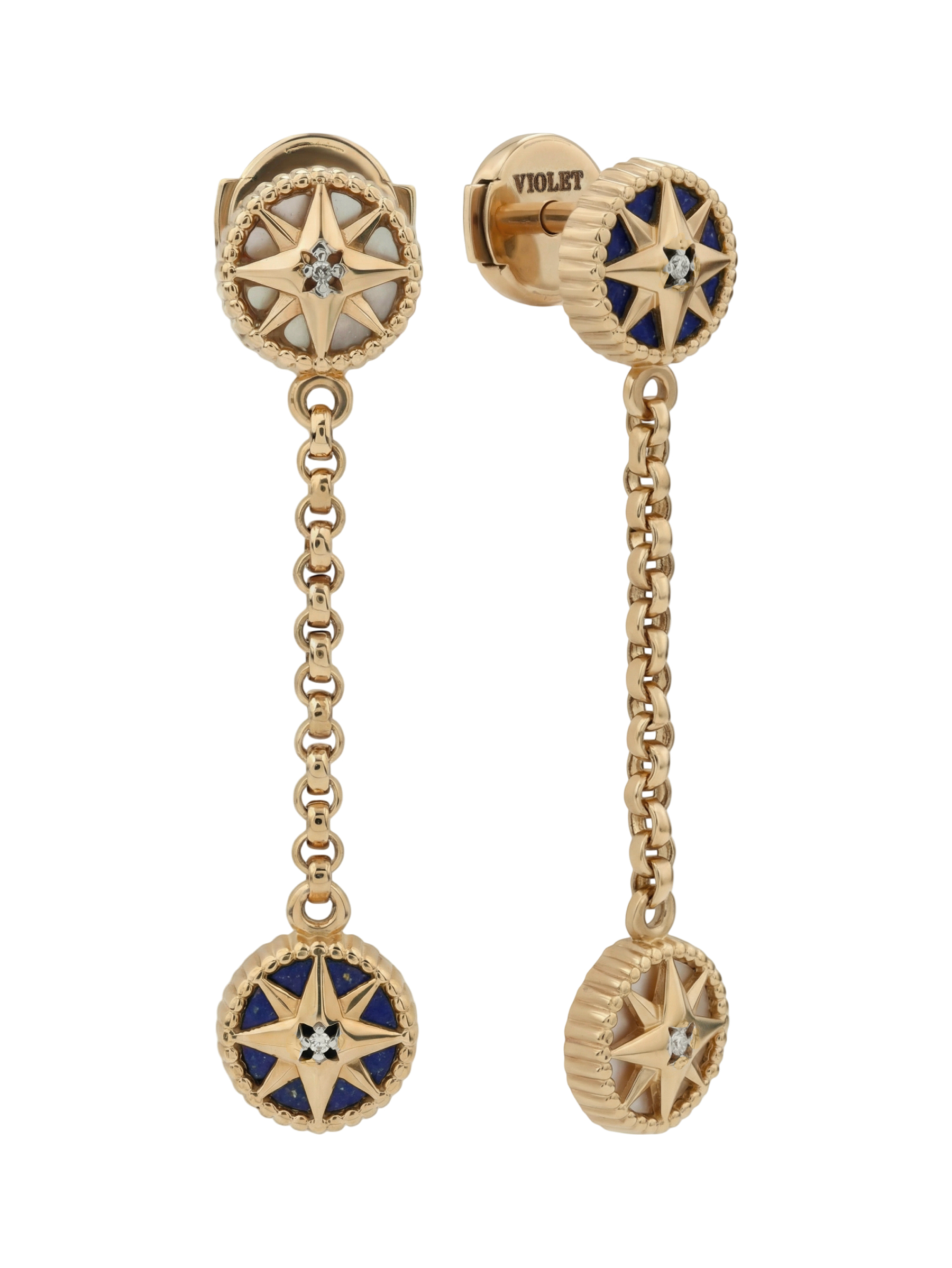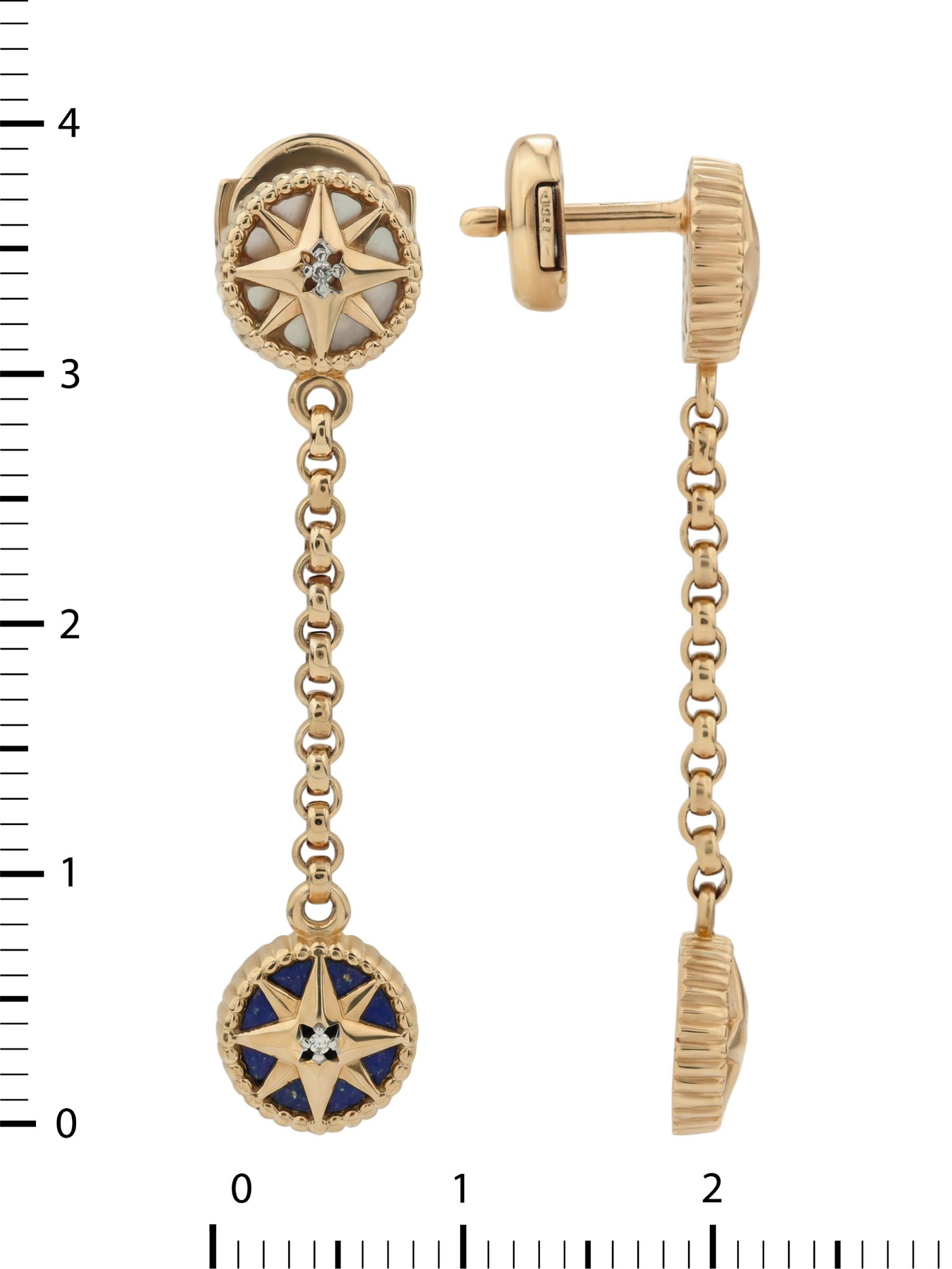 Серьги из золота c бриллиантами, лазуритом и перламутром