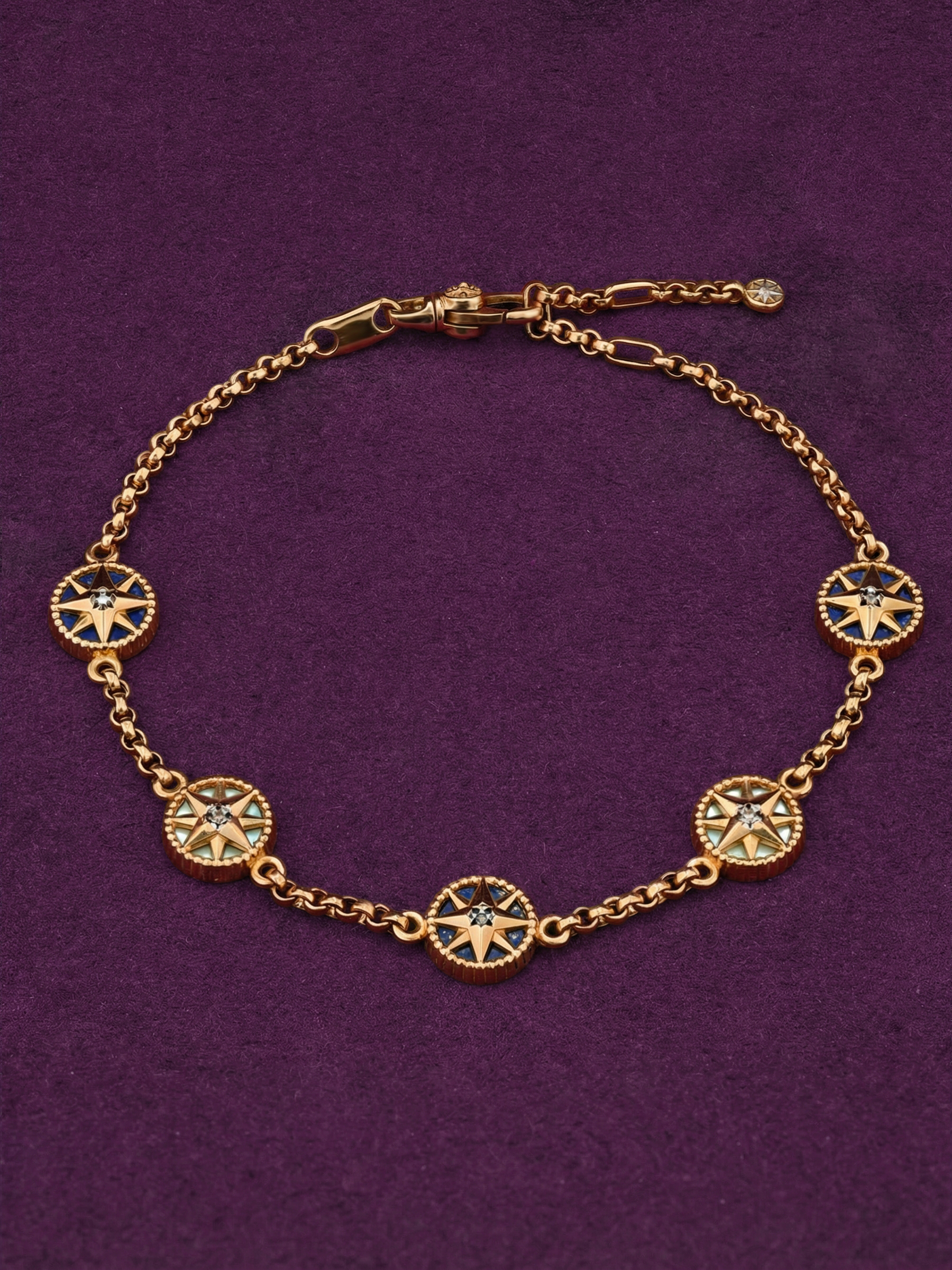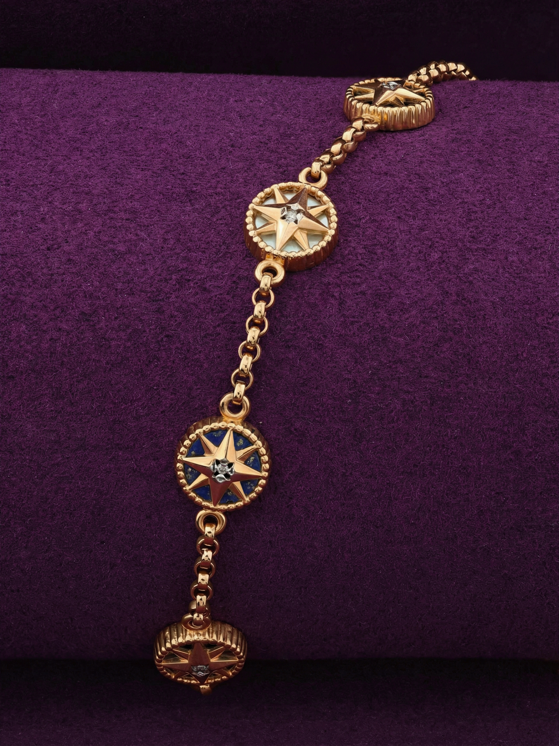 Браслет из золота c бриллиантами, лазуритом и перламутром