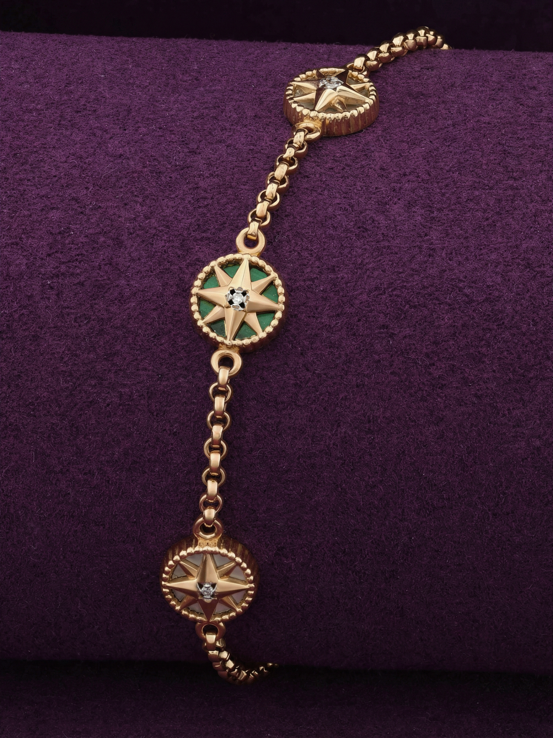 Браслет из золота c бриллиантами, малахитом и перламутром