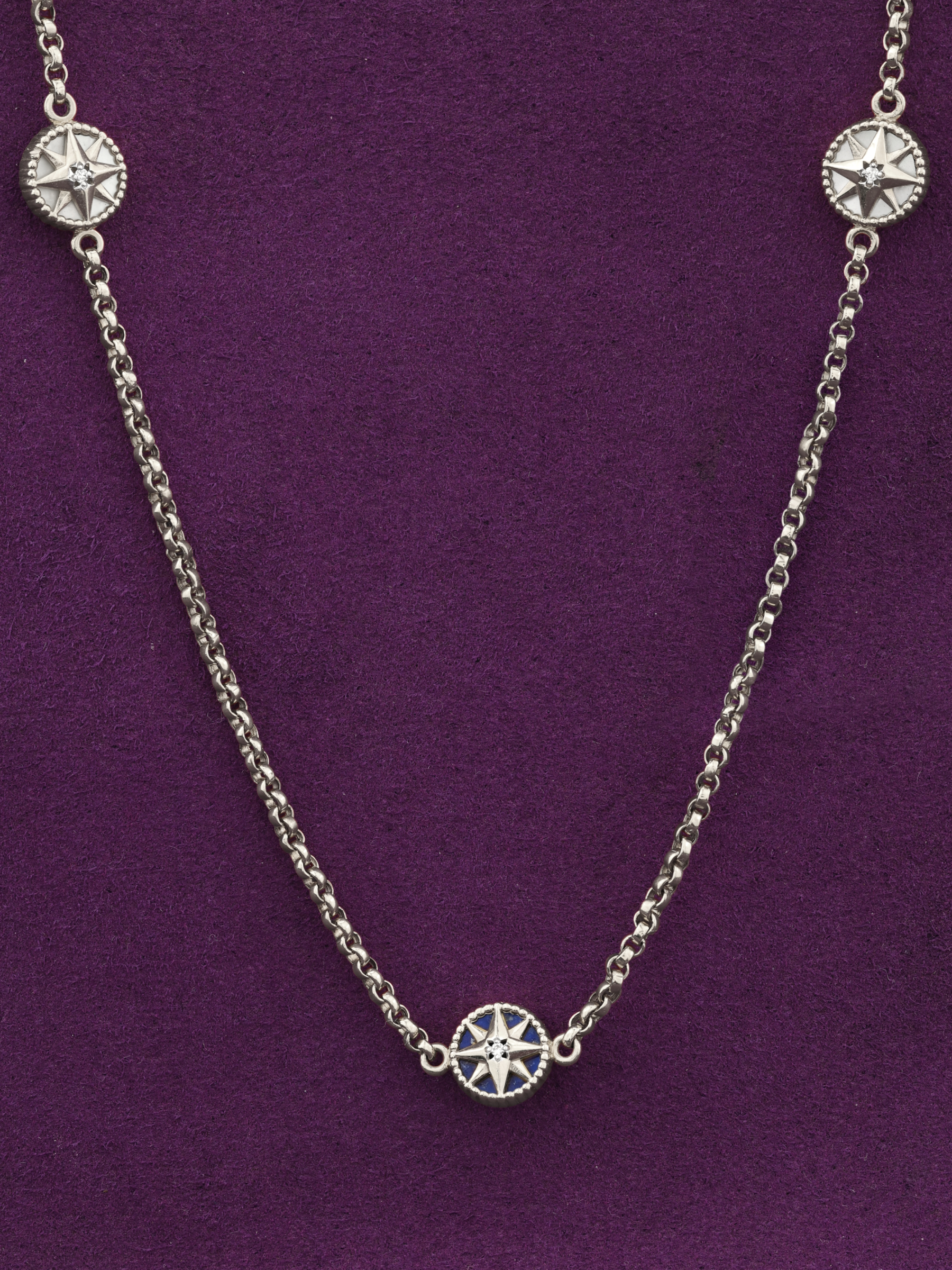 Колье из белого золота c бриллиантами, лазуритом и перламутром