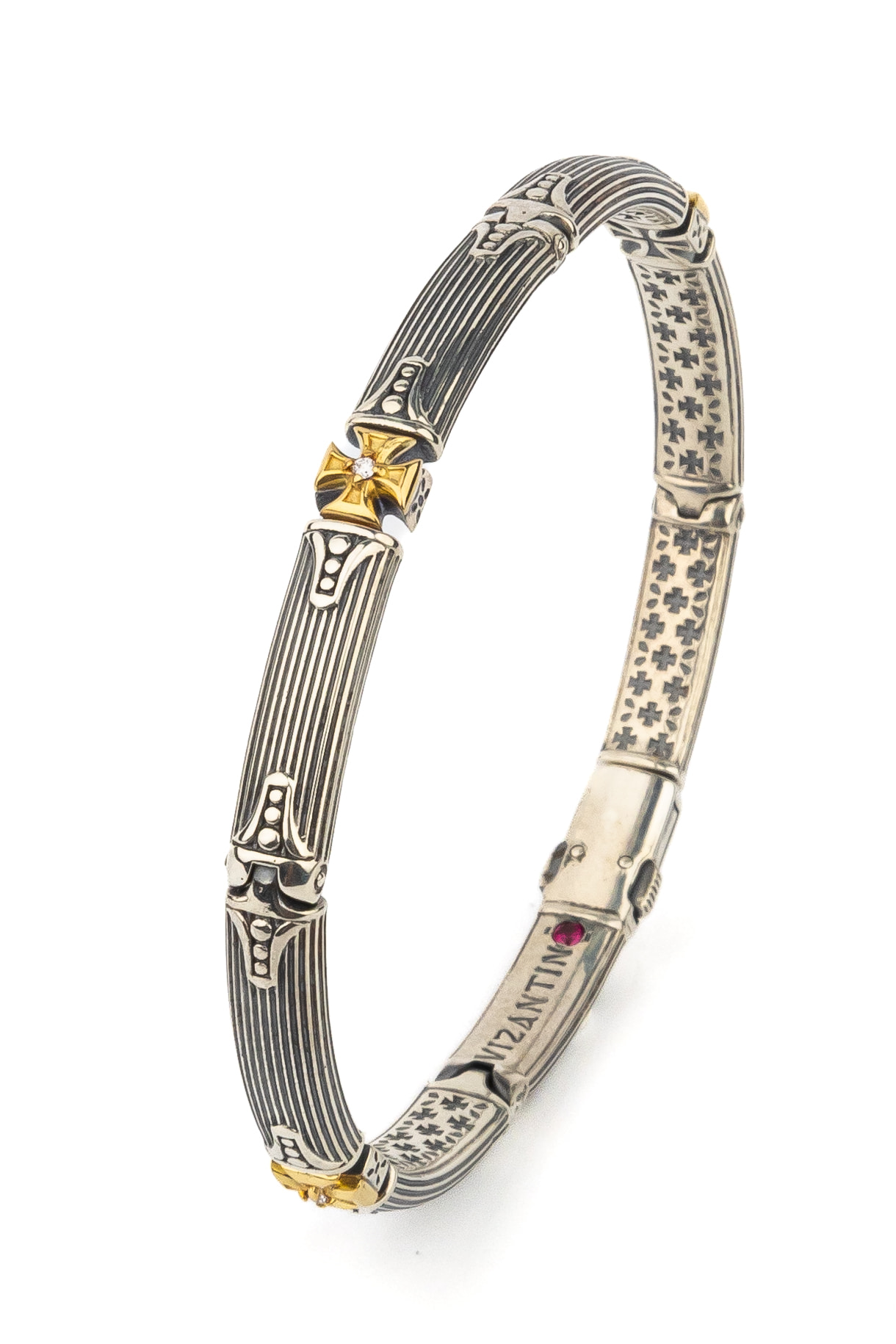 Браслет из серебра и золота c бриллиантами и рубином