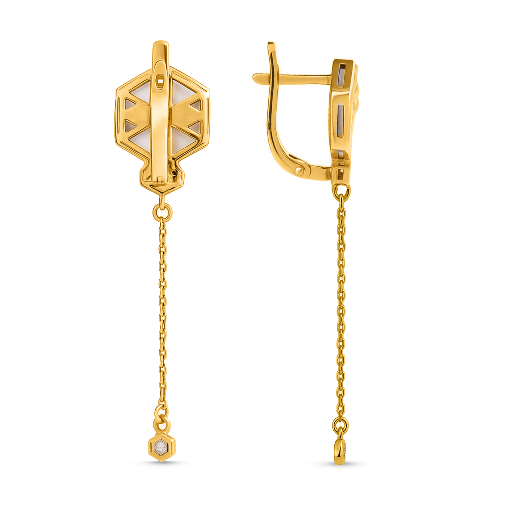 Серьги из лимонного золота c бриллиантами и перламутром