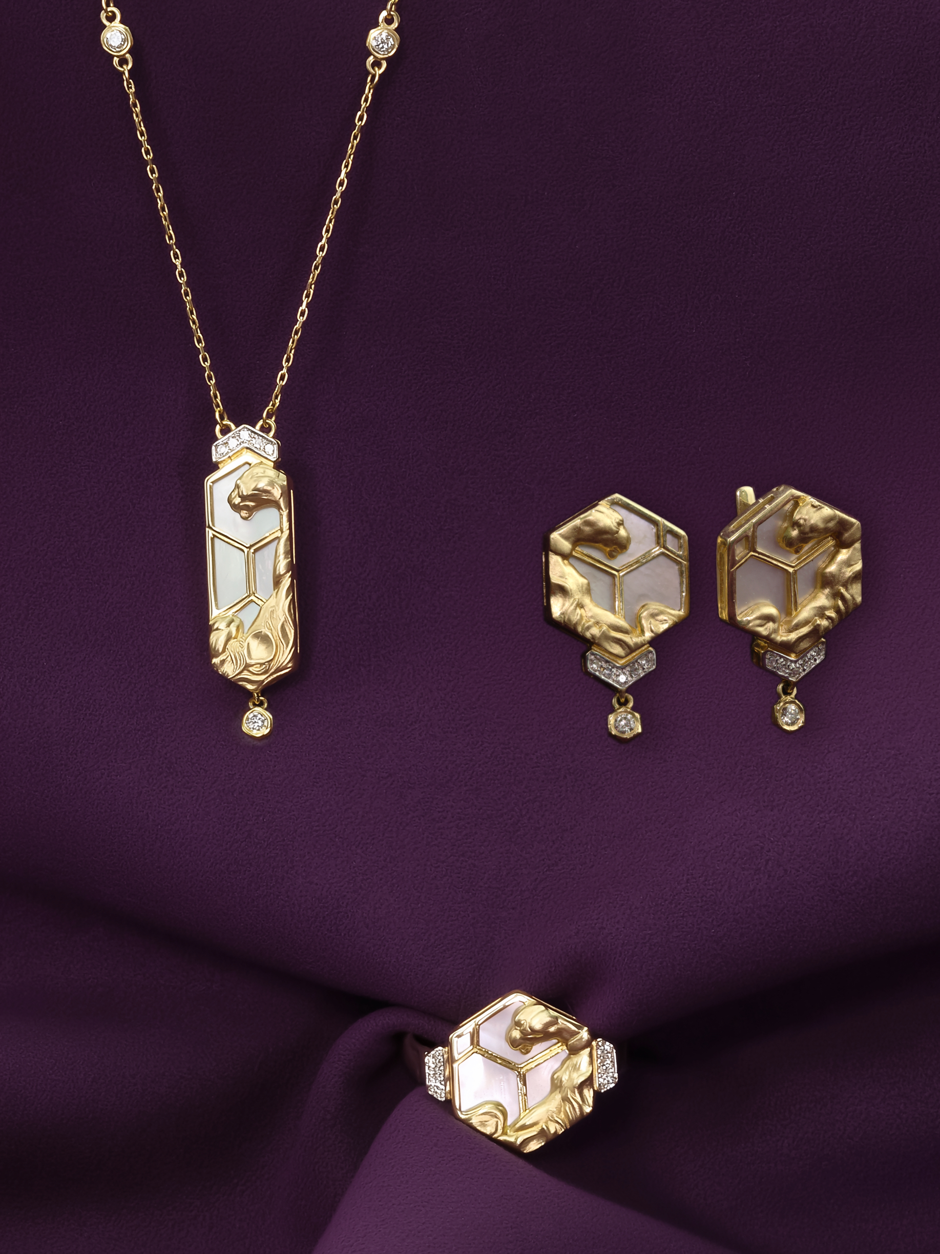 Колье из лимонного золота c бриллиантами и перламутром