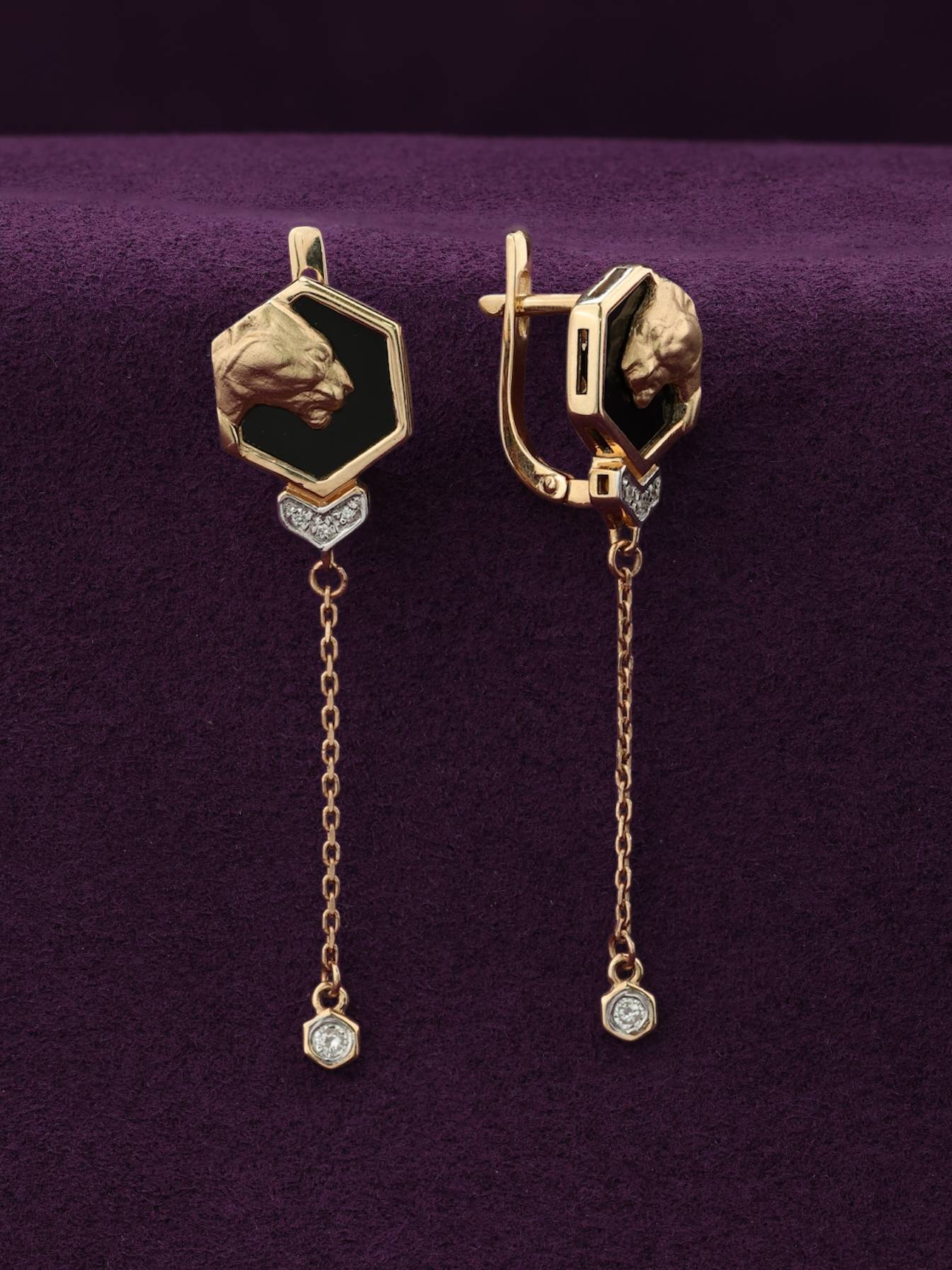 Серьги из золота c бриллиантами и ониксом