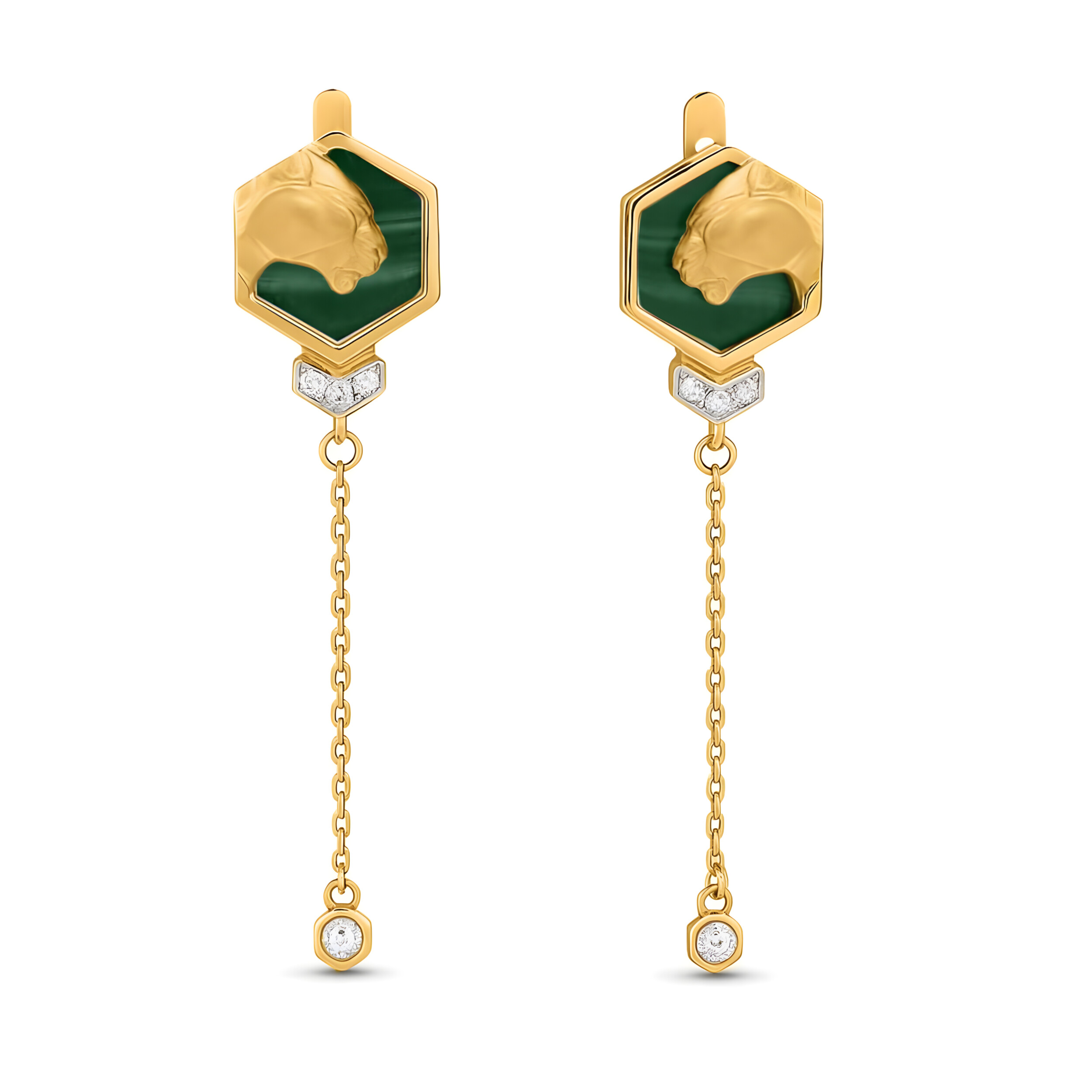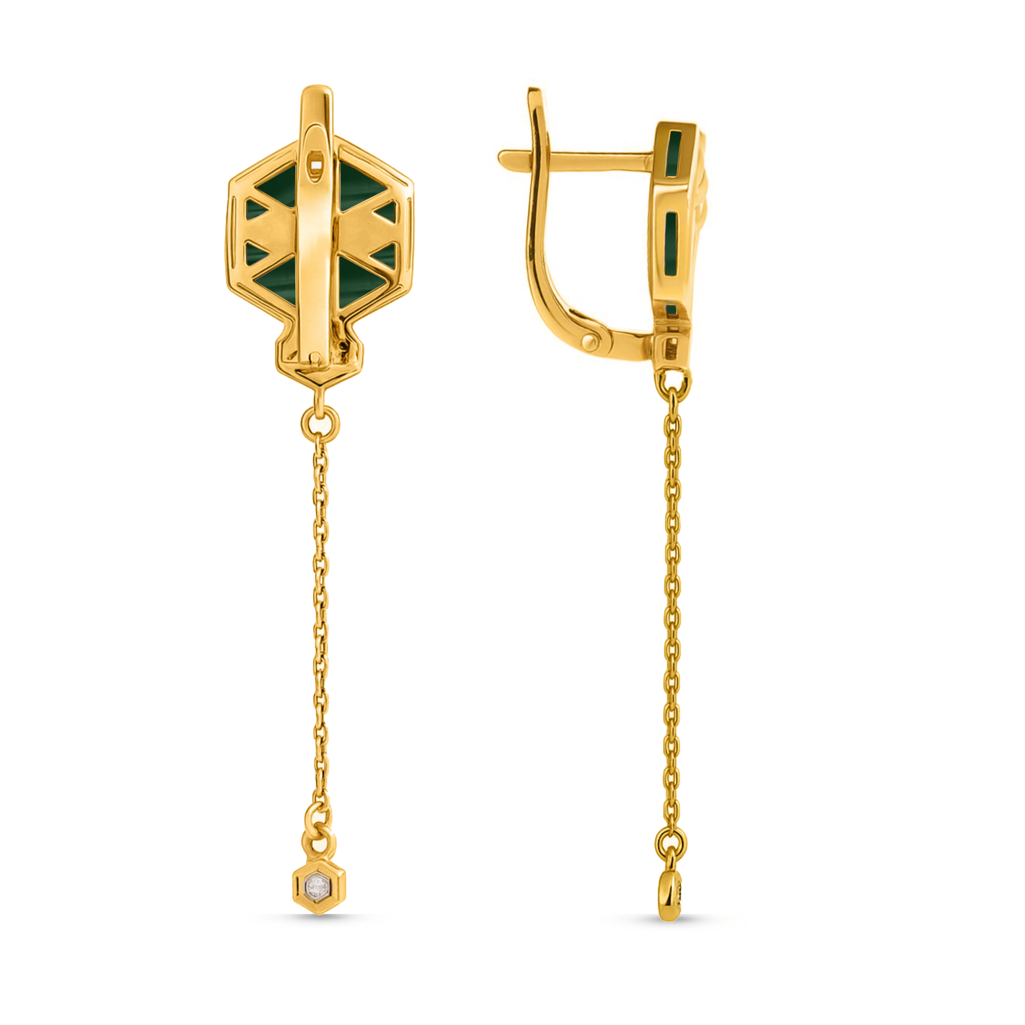Серьги из лимонного золота c бриллиантами и малахитом
