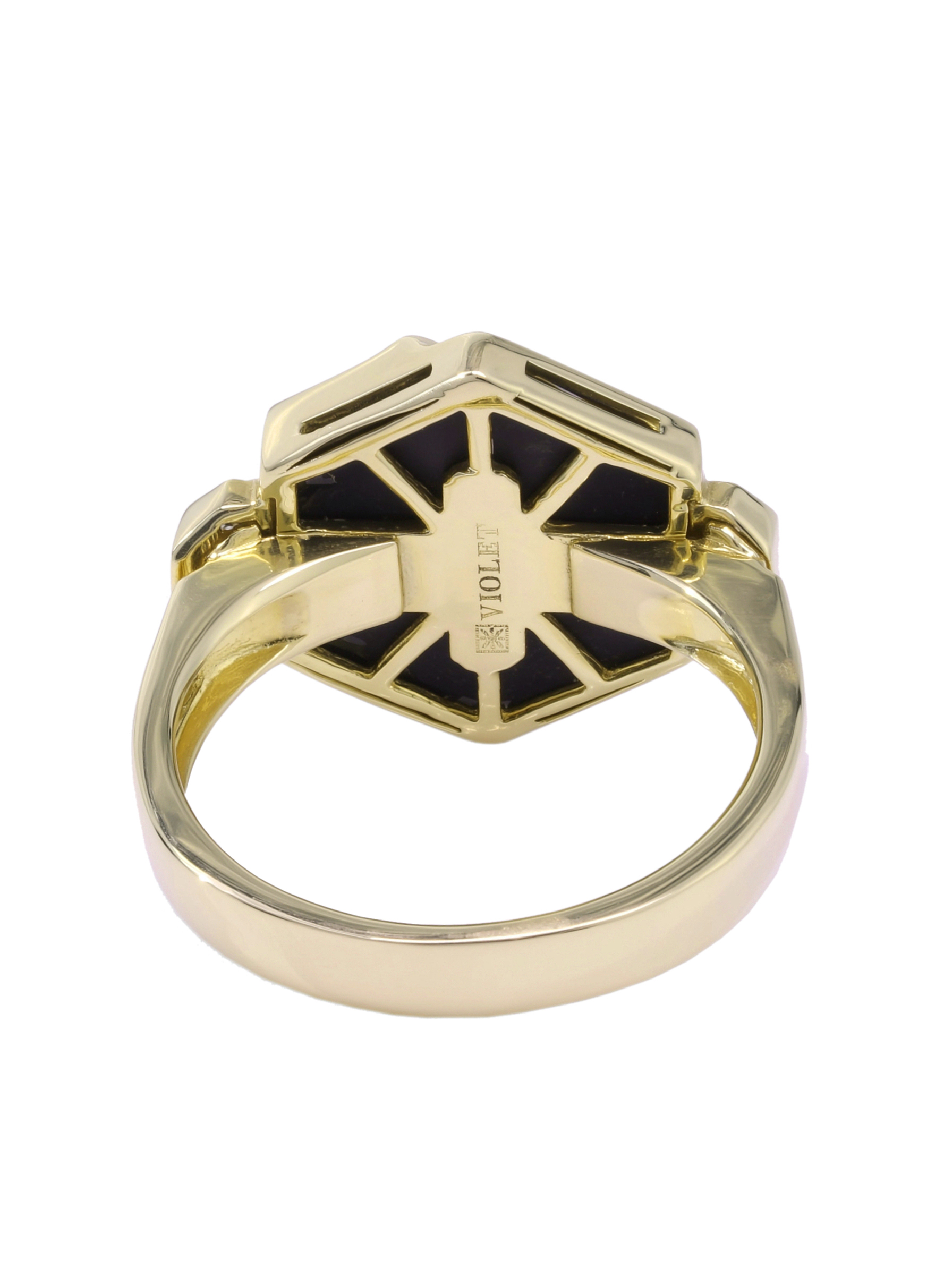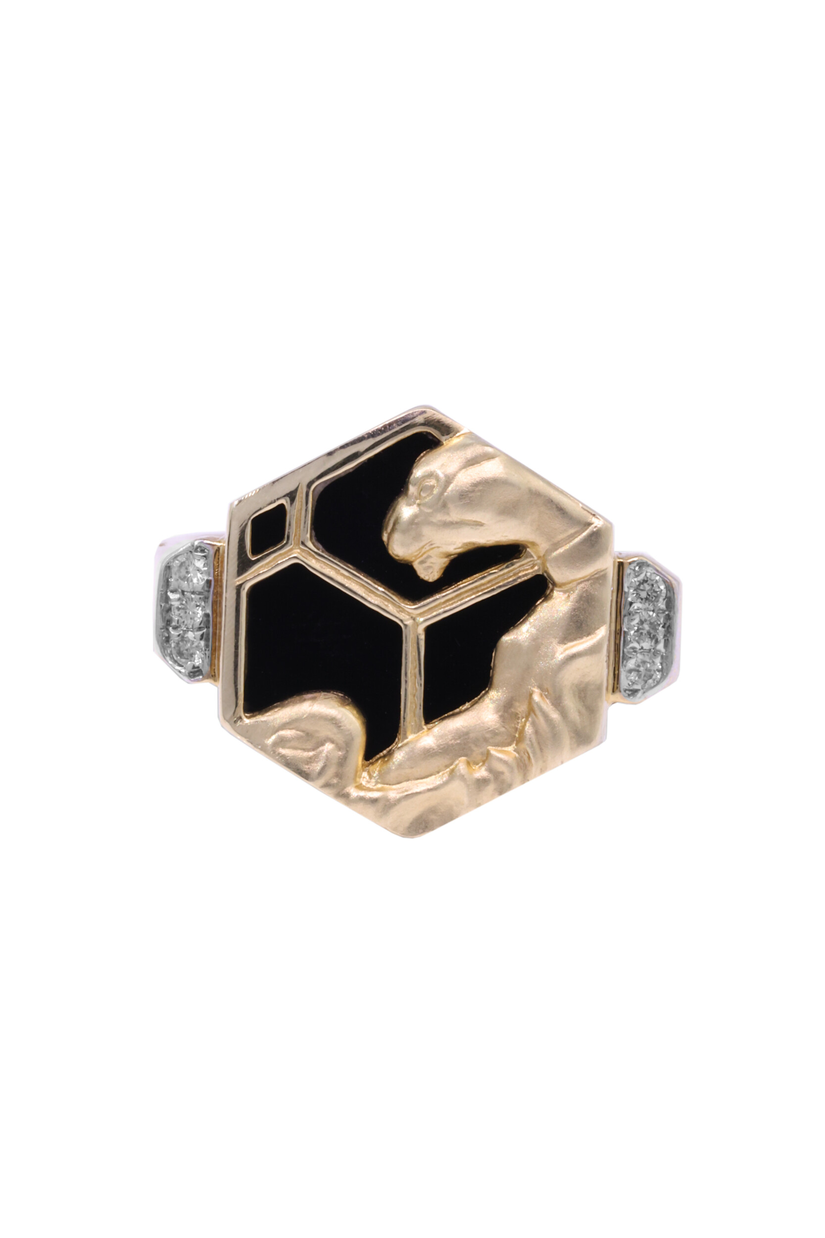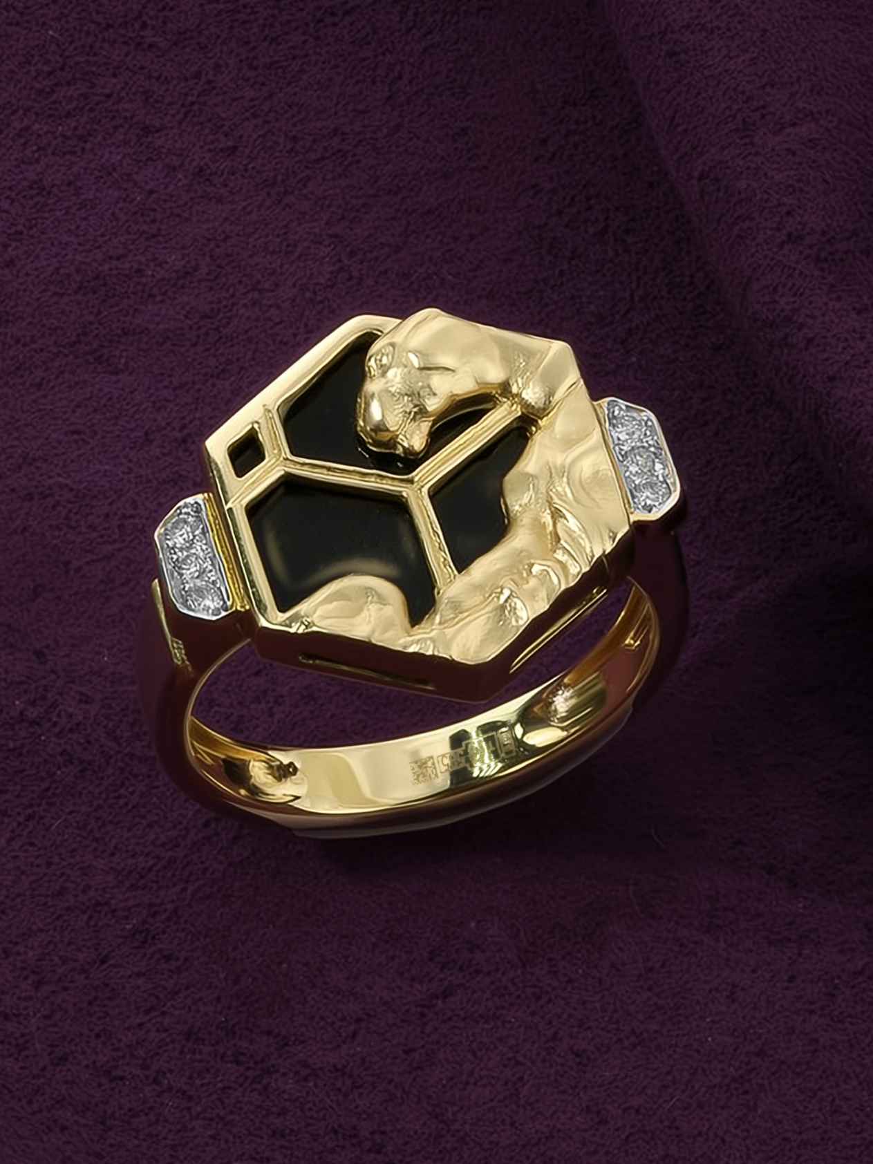 Кольцо из лимонного золота c бриллиантами и ониксом