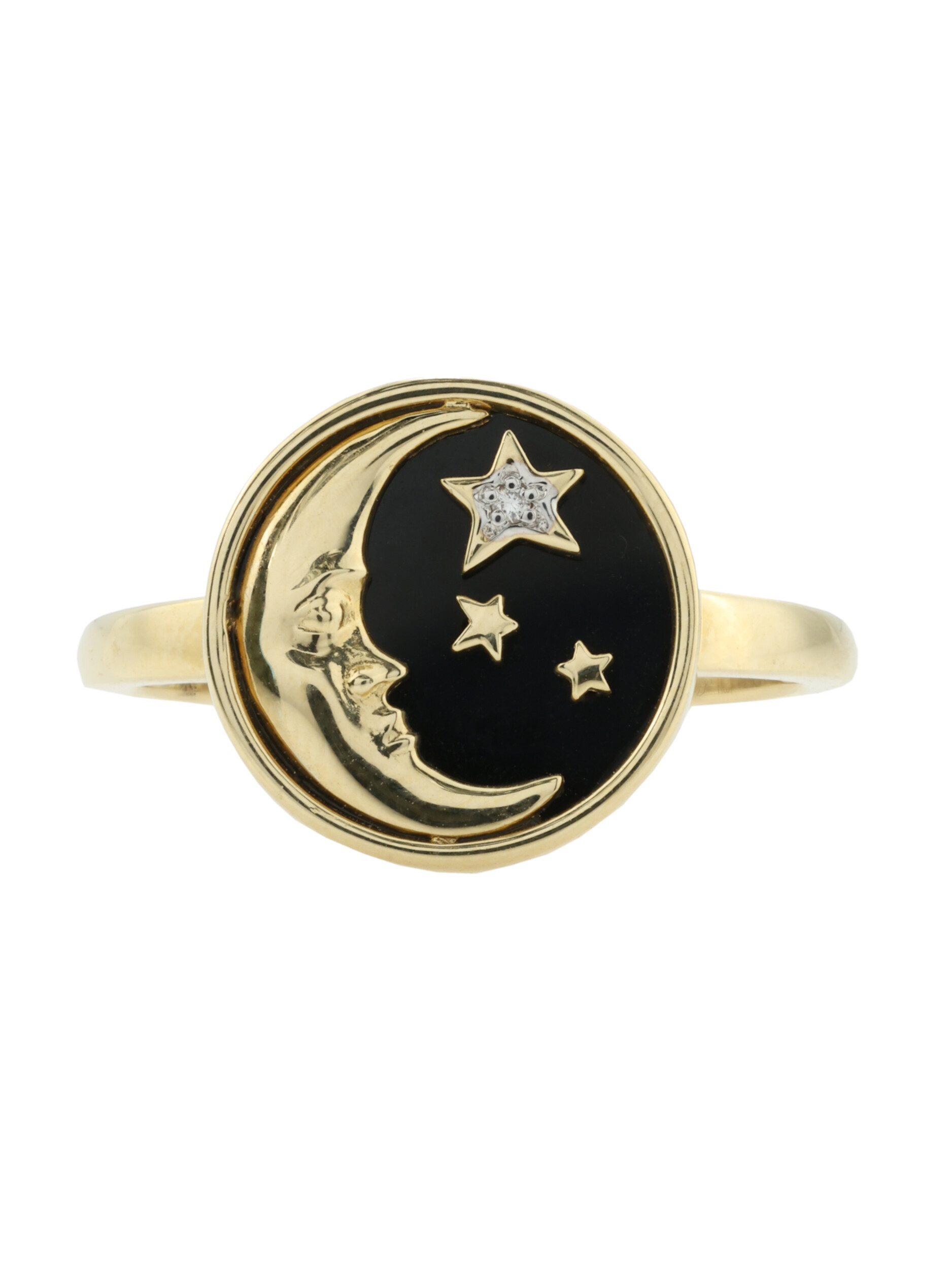 Кольцо из лимонного золота c бриллиантами и ониксом