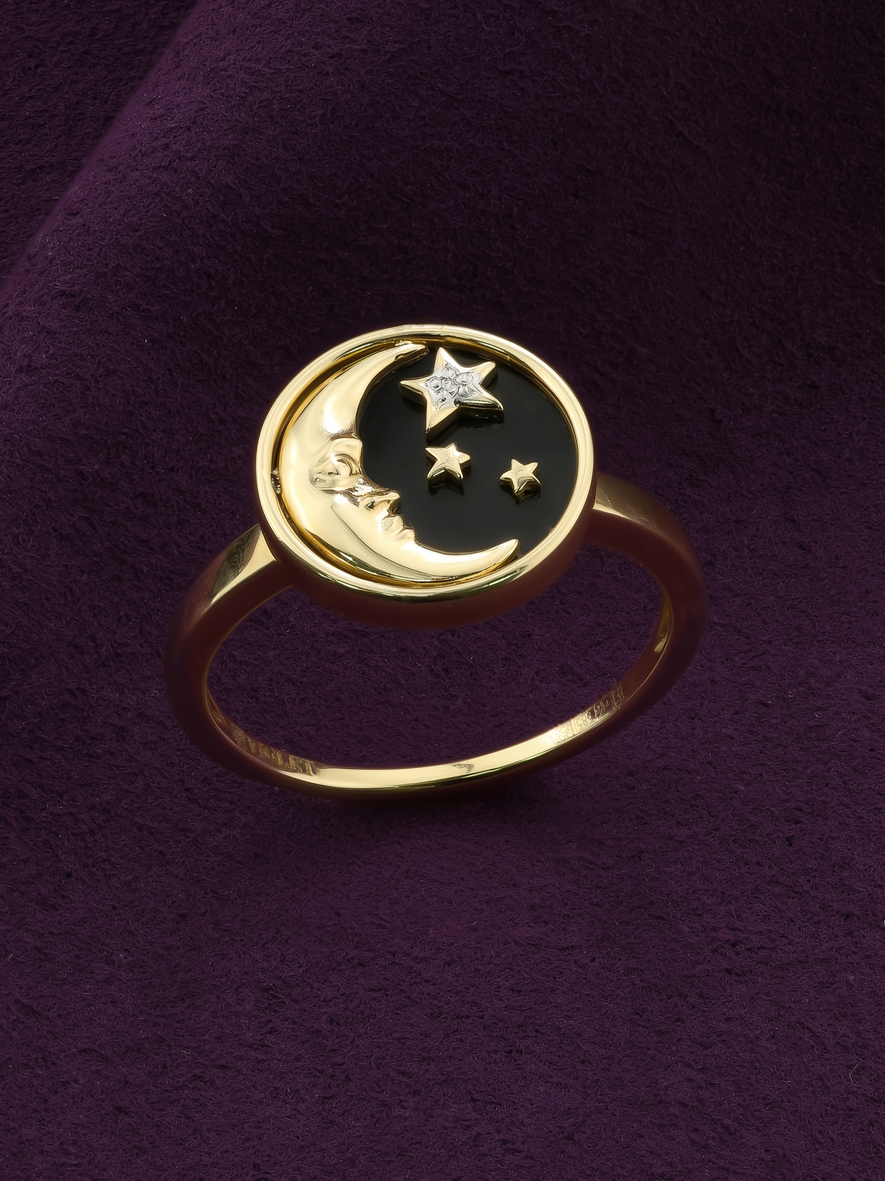 Кольцо из лимонного золота c бриллиантами и ониксом