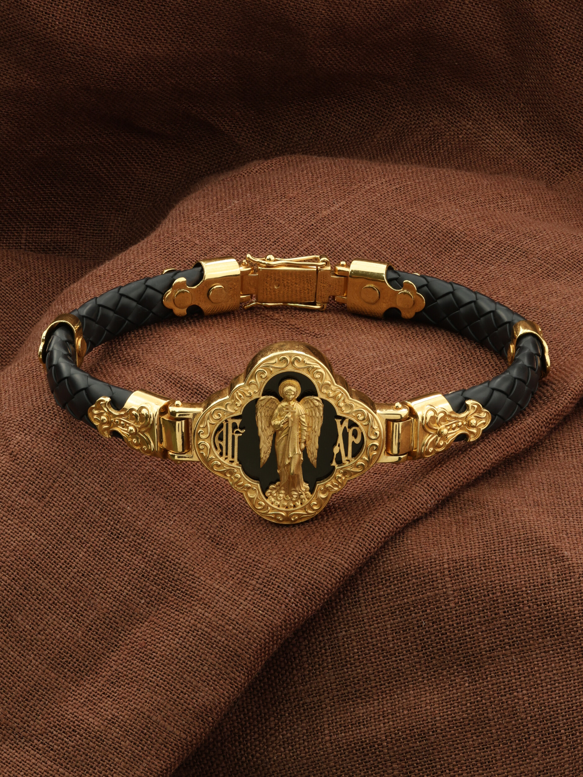 На лицевой стороне основного звена изображён Святой Ангел-Хранитель. Ангел Хранитель — это Ангел приставляемый Богом к человеку при крещении для охраны и помощи в добрых делах. Он невидимо находится при человеке на протяжении всей его жизни, если человек сохраняет в себе любовь к Богу и истинную веру перед Ним. Ангел-Xранитель делают для нас все, что служит к истинному нашему благу и спасению. Невидимо пребывая при нас постоянно, он, руководствуя нас ко спасению, не только по нашему желанию таинственно наставляет нас на все доброе и полезное, не только возносит наши молитвы к Богу, но еще и сам от себя охраняют и защищают нас от врагов видимых и невидимых и ходатайствует за нас пред Богом. Ангел-Хранитель так любит нас, как никто на земле любить не может. Ангел-Хранитель — присный друг наш, незримый тихий собеседник, пресладостный утешитель. Одного лишь каждому из нас он желает — спасения души; к этому он направляет все свои заботы. И если видит нас также заботящимися о спасении, радуется, если же видит нас пребывающими в нерадении о душе своей, скорбит.