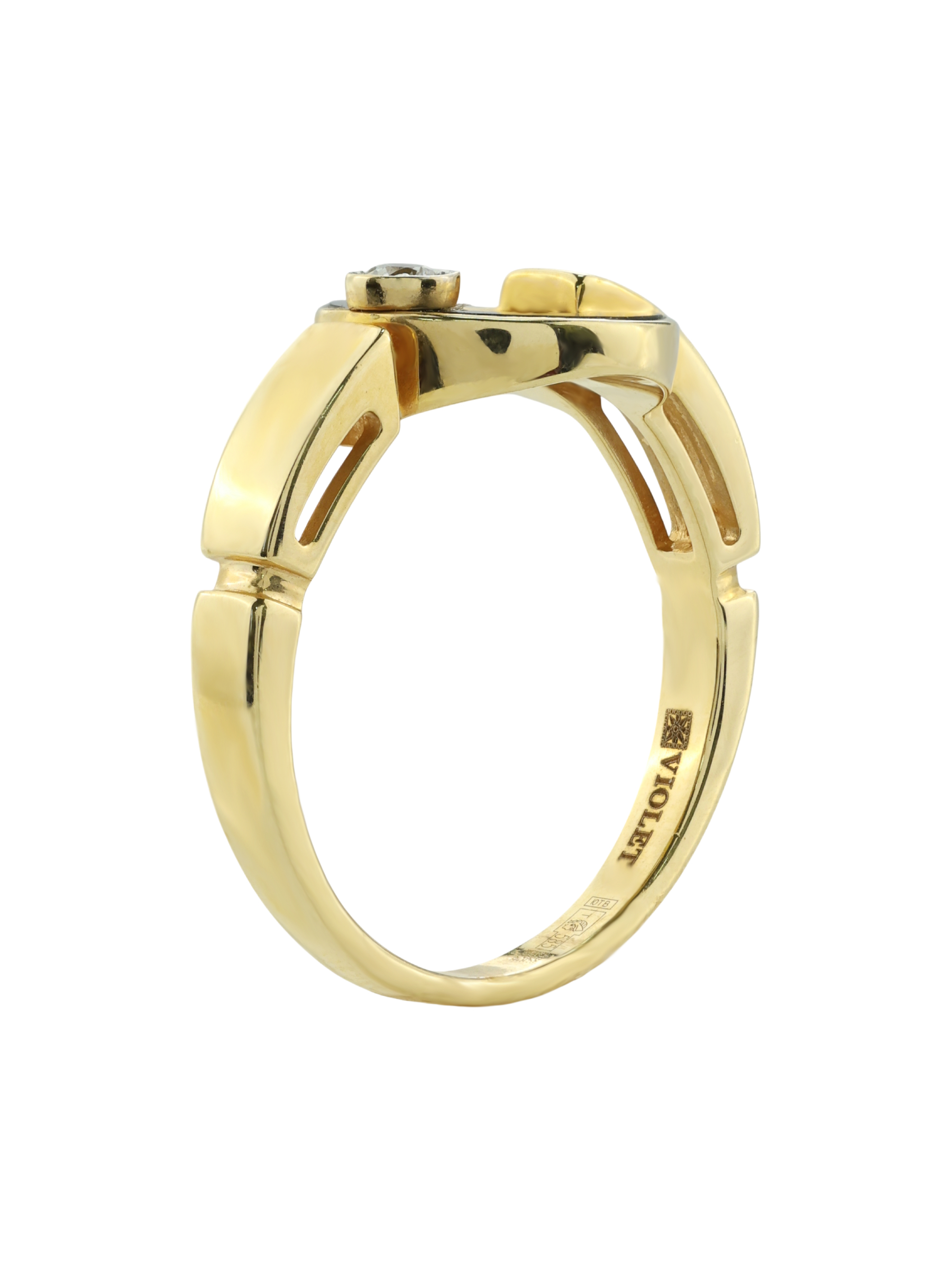 Кольцо из лимонного золота c бриллиантами и ониксом