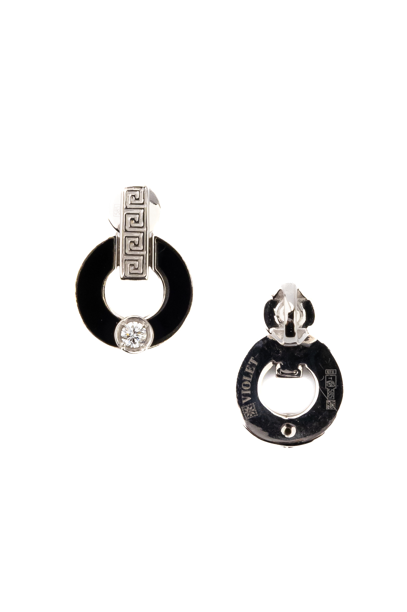 Серьги из белого золота c бриллиантами и ониксом