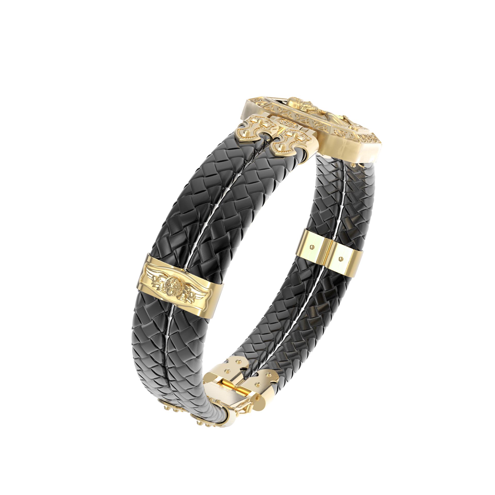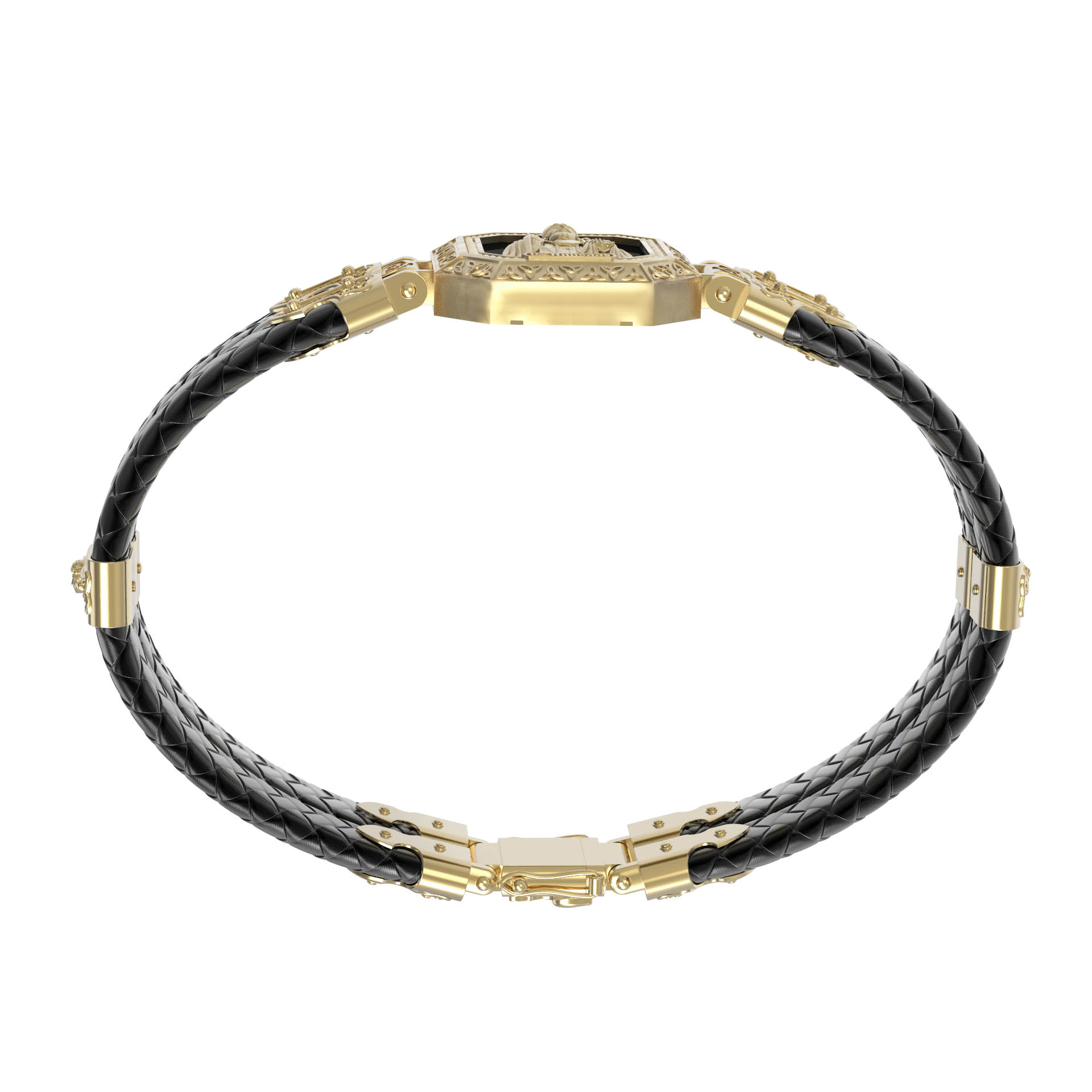 Браслет из лимонного золота c шнурком и ониксом