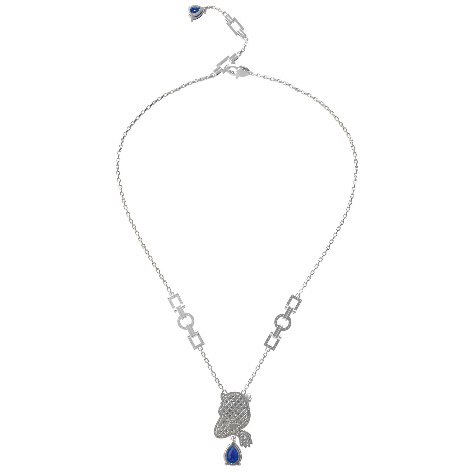 Колье из белого золота c бриллиантами, сапфиром и изумрудом