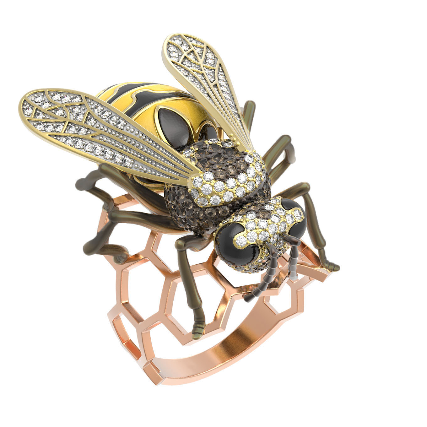 Кольцо из золота c эмалью и фианитом