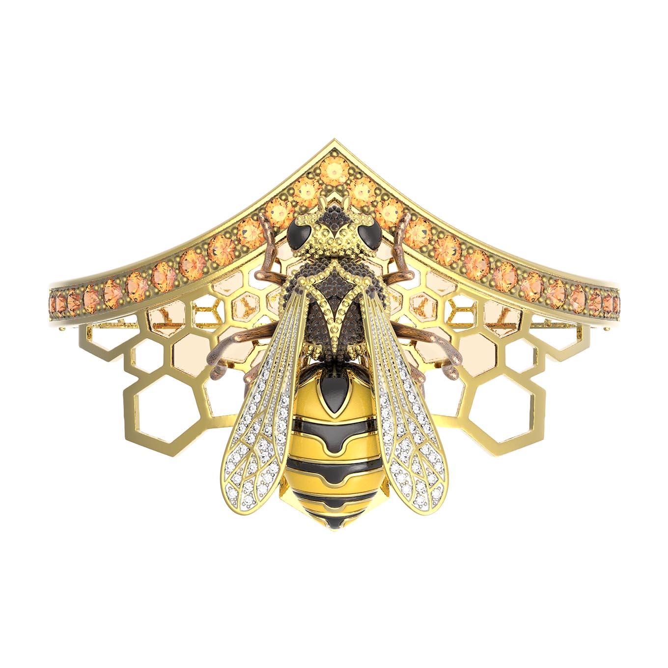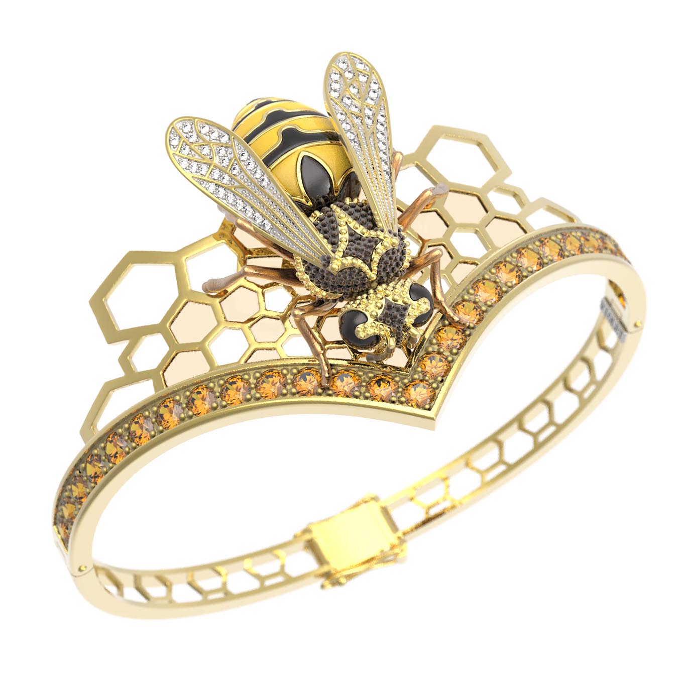 Браслет из лимонного золота c эмаль, фианитом, цитрином и эмалью