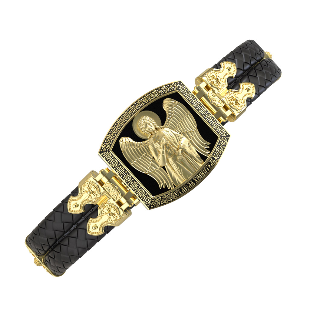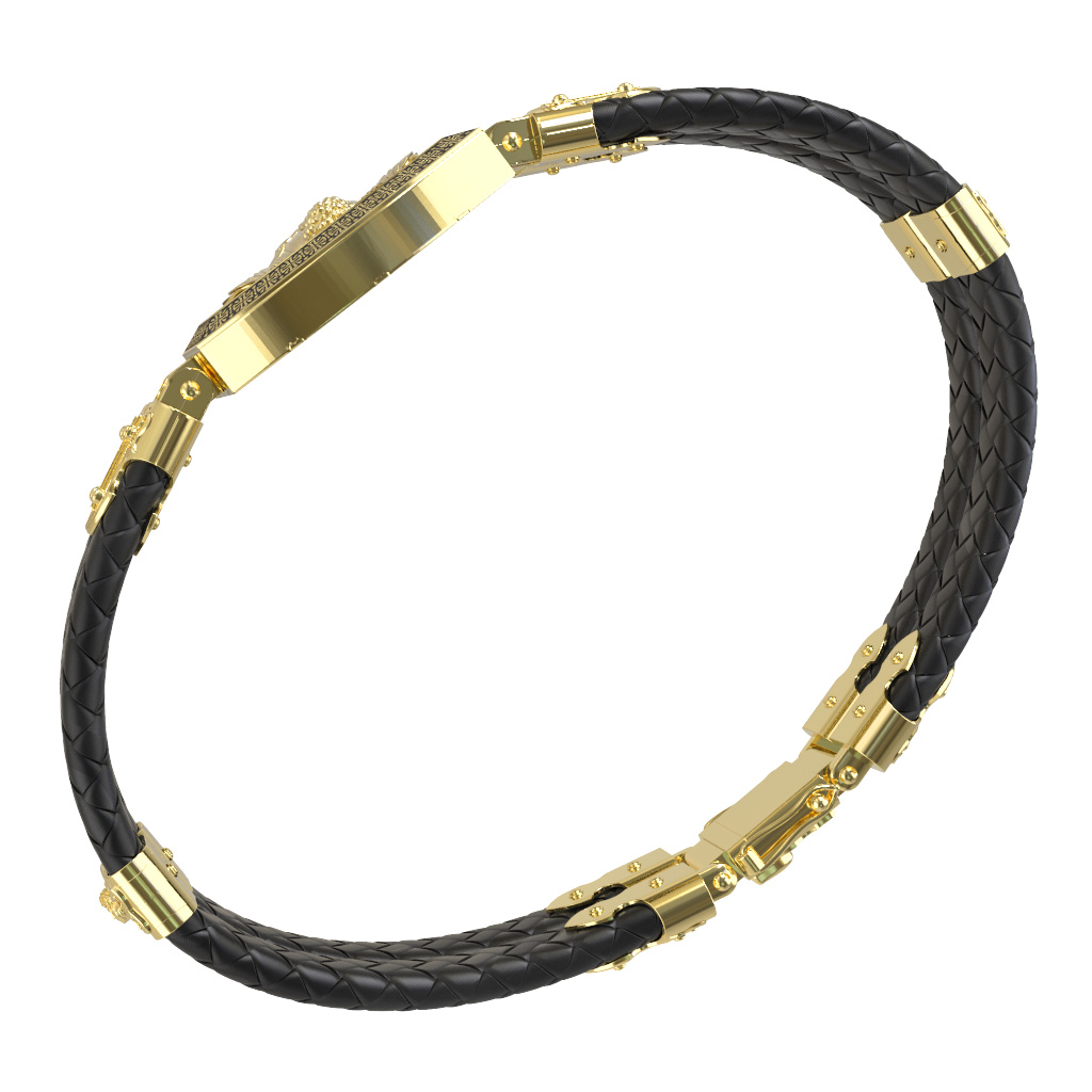 Браслет из лимонного золота c эмалью, шнурком и ониксом
