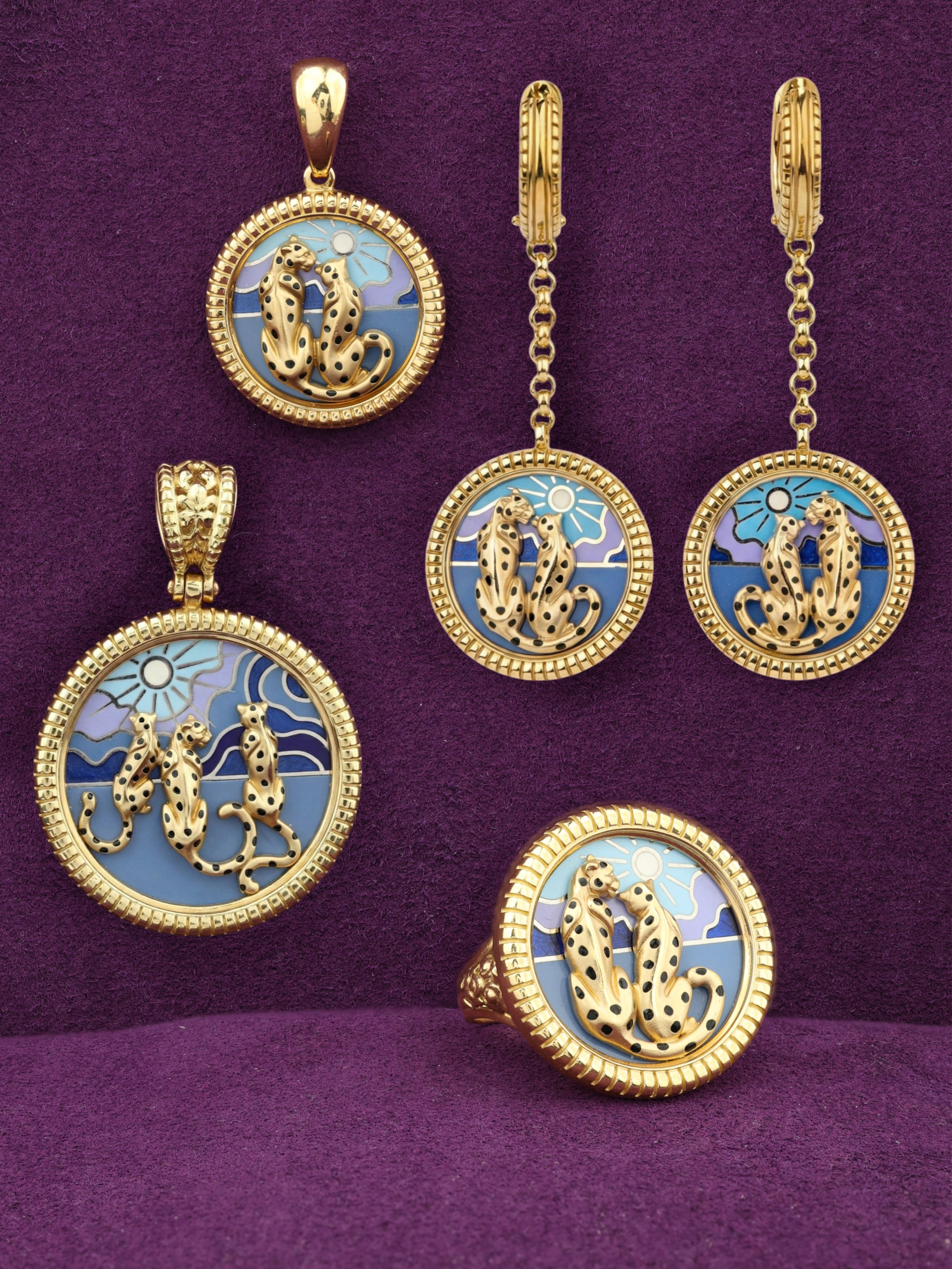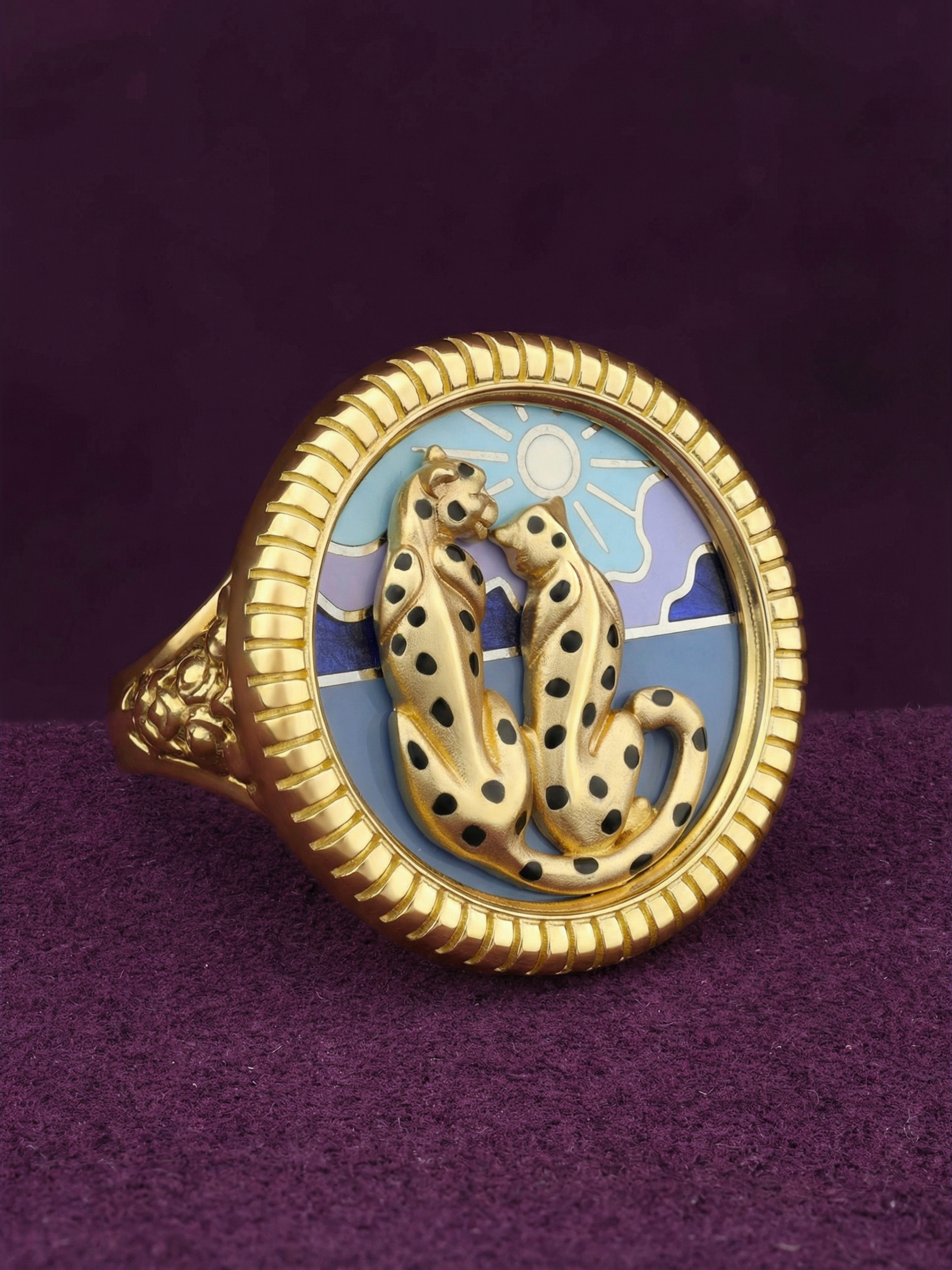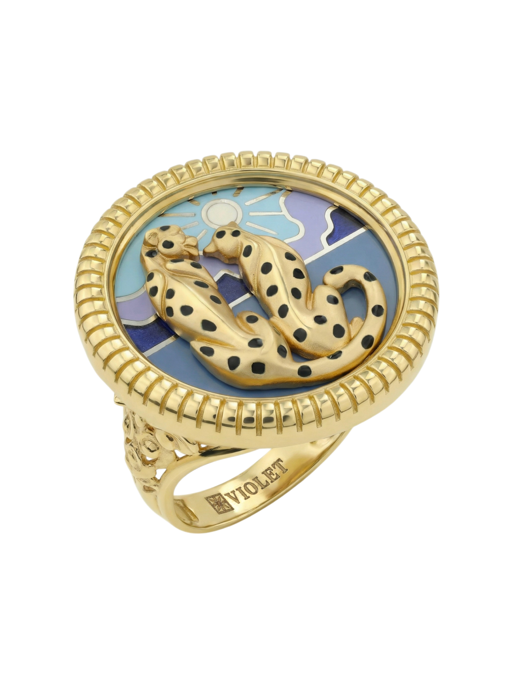 Кольцо из лимонного золота c эмаль