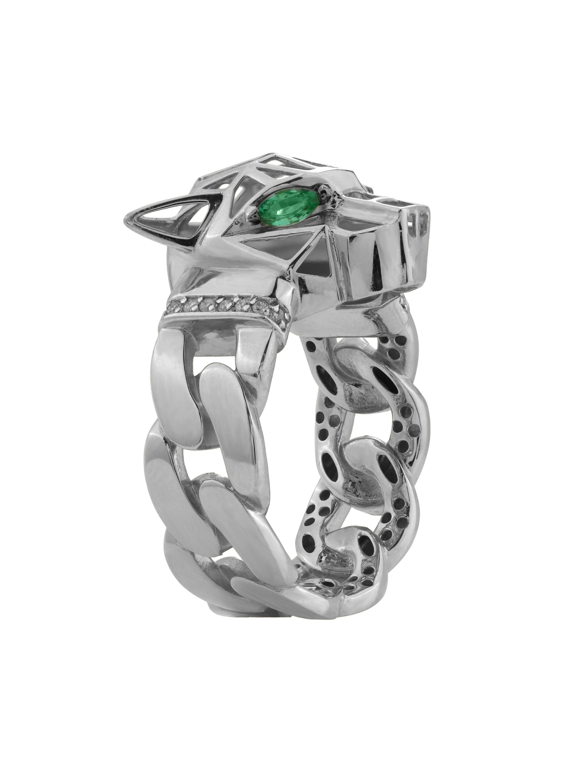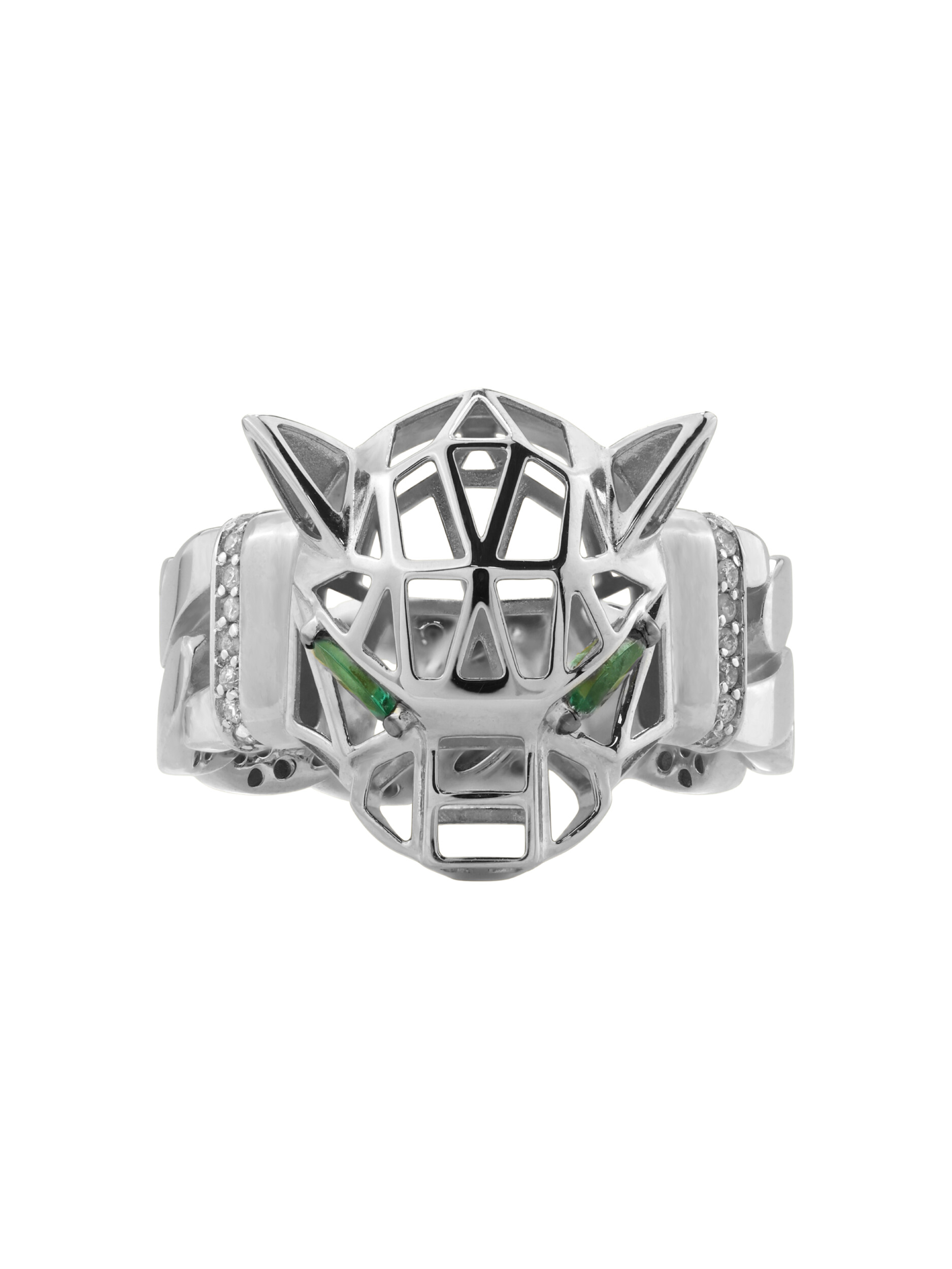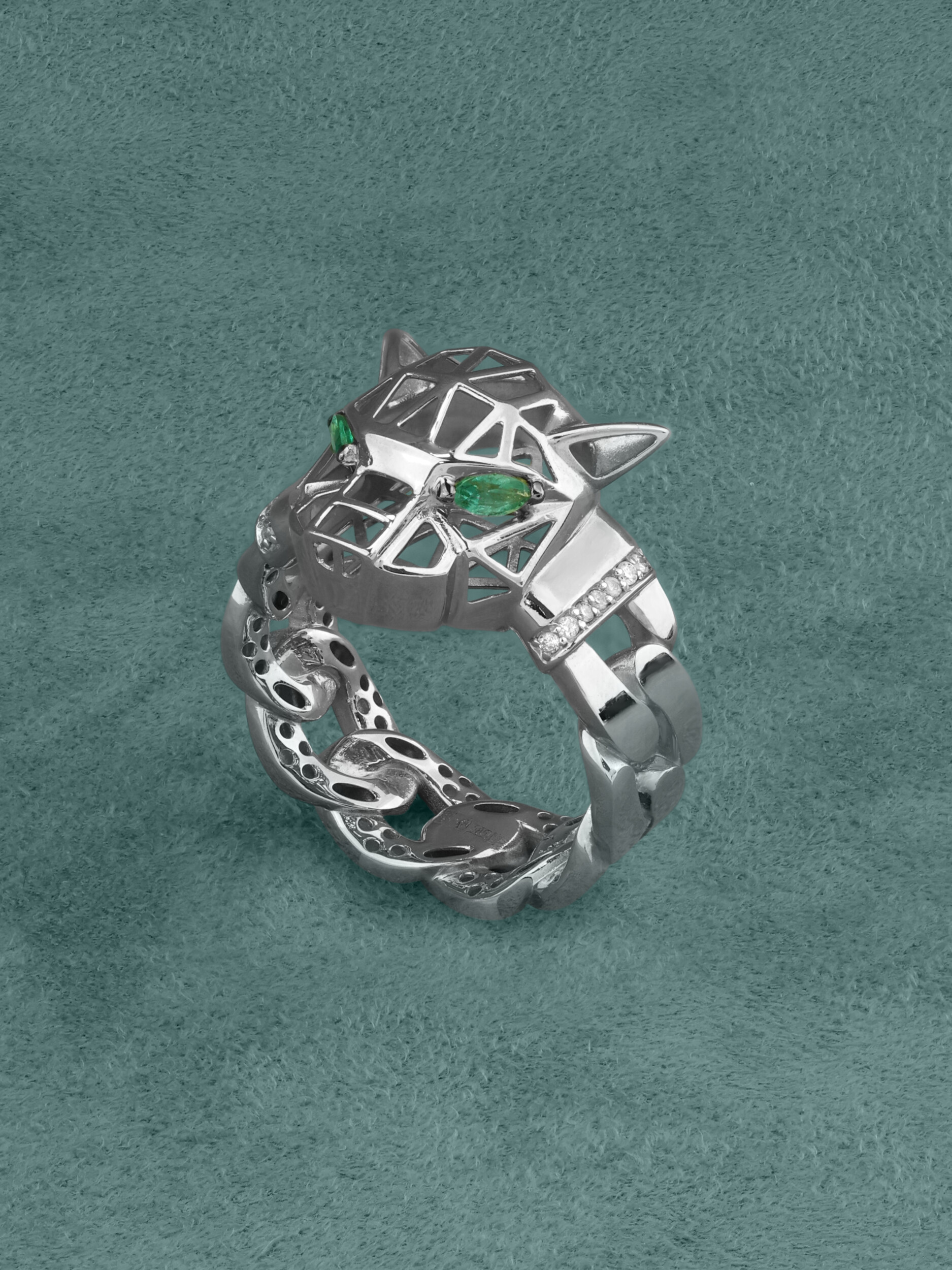 Кольцо из белого золота c бриллиантами и изумрудом