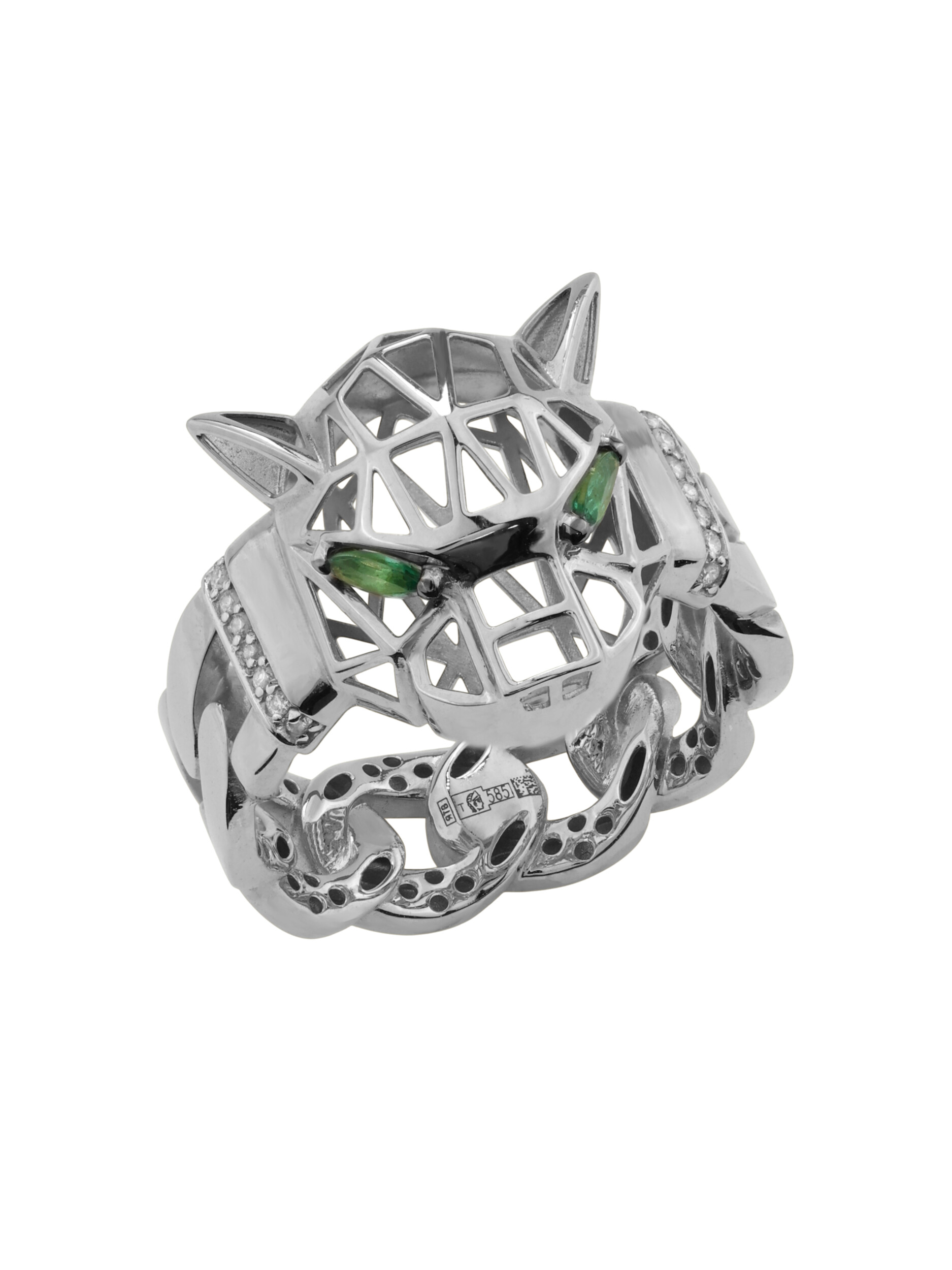 Кольцо из белого золота c бриллиантами и изумрудом