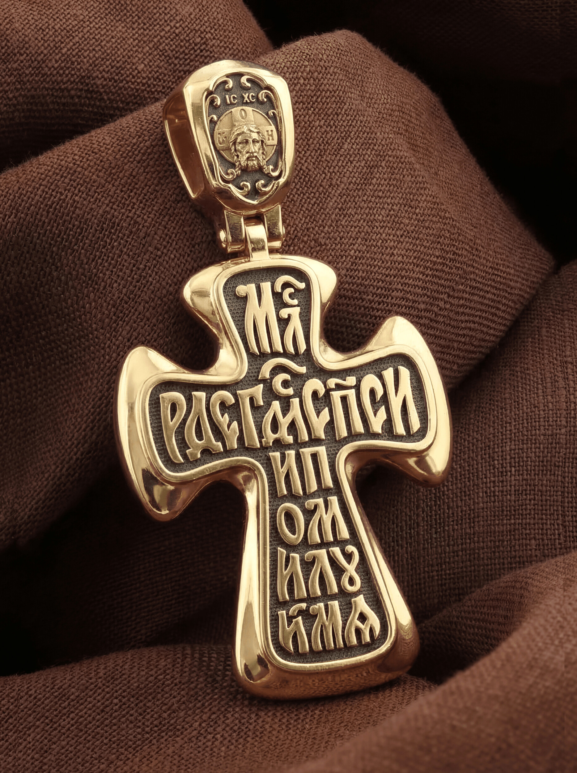 Всю оборотную часть креста занимает молитва обращенная к Господу: «Милостивый Господи, спаси и помилуй мя».
