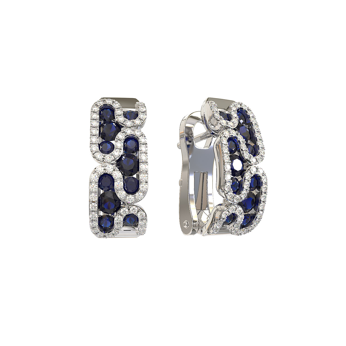Серьги из белого золота c бриллиантами и сапфиром