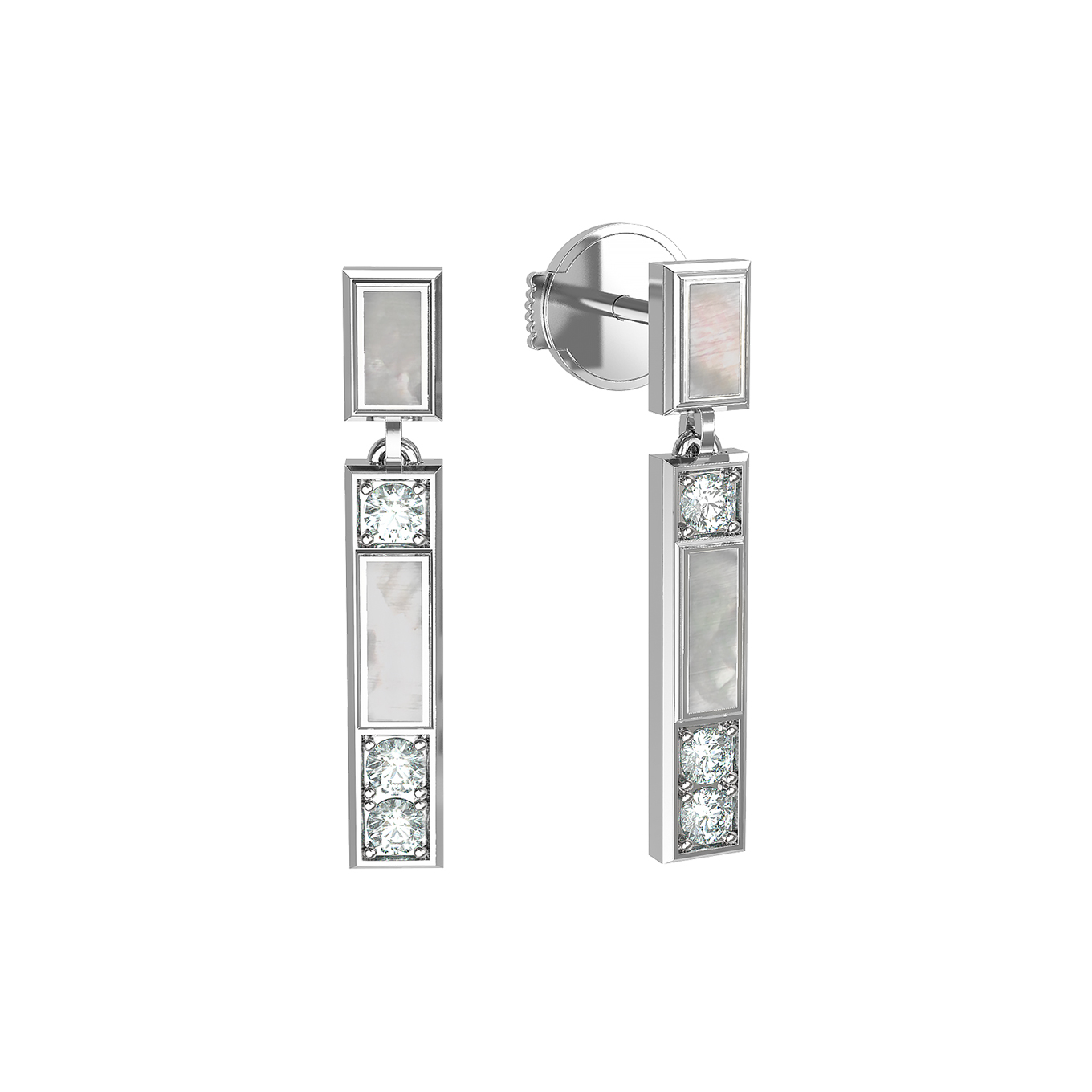 Серьги из белого золота c бриллиантами и перламутром