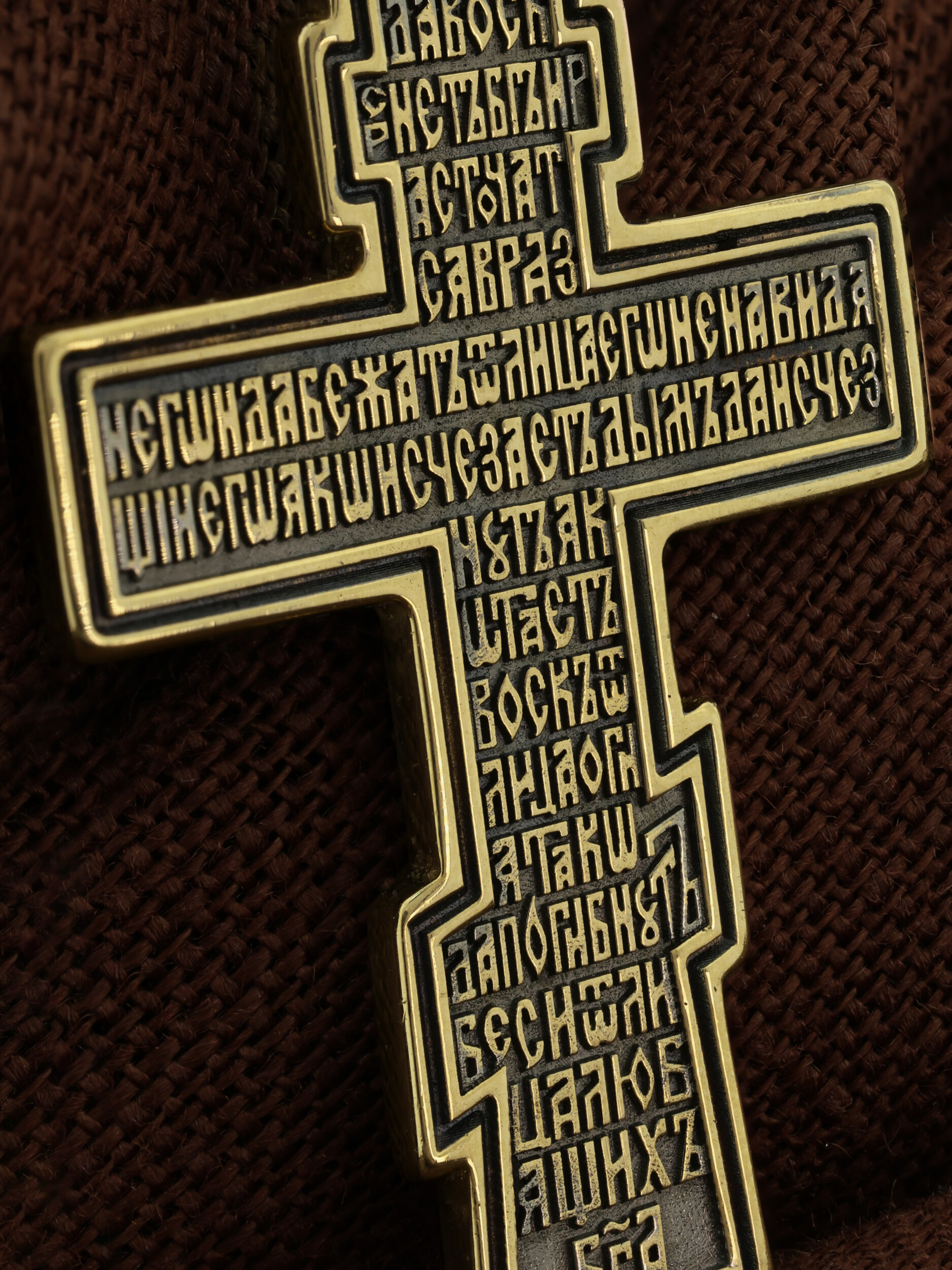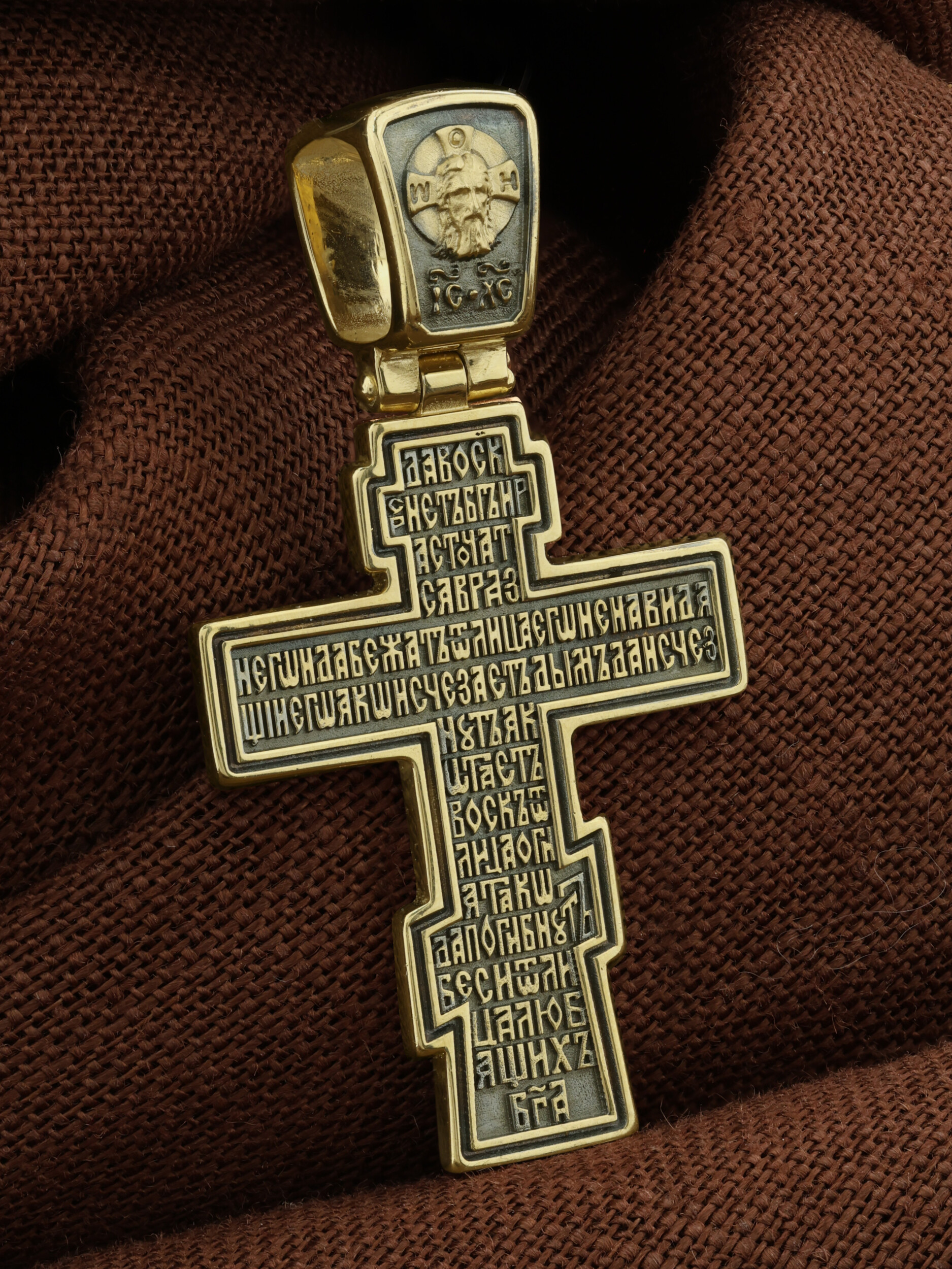 На обороте написаны начальные стихи оградительной молитвы Честному Кресту Господню. Эту молитву читают в опасности, а также носят при себе для защиты от злых сил: Да воскреснет Бог, и расточатся врази Его, и да бежат от лица Его ненавидящий Его. Яко исчезает дым, да исчезнут; яко тает воск от лица огня, тако да погибнут беси от лица любящих Бога и знаменующихся крестным знамением, и в веселии глаголющих: радуйся, Пречестный и Животворящий Кресте Господень, прогоняй бесы силою на тебе пропятаго Господа нашего Иисуса Христа, во ад сшедшаго и поправшаго силу диаволю, и даровавшаго нам тебе Крест Свой Честный на прогнание всякаго супостата. О, Пречестный и Животворящий Кресте Господень! Помогай ми со Святою Госпожею Девою Богородицею и со всеми святыми во веки. Аминь»