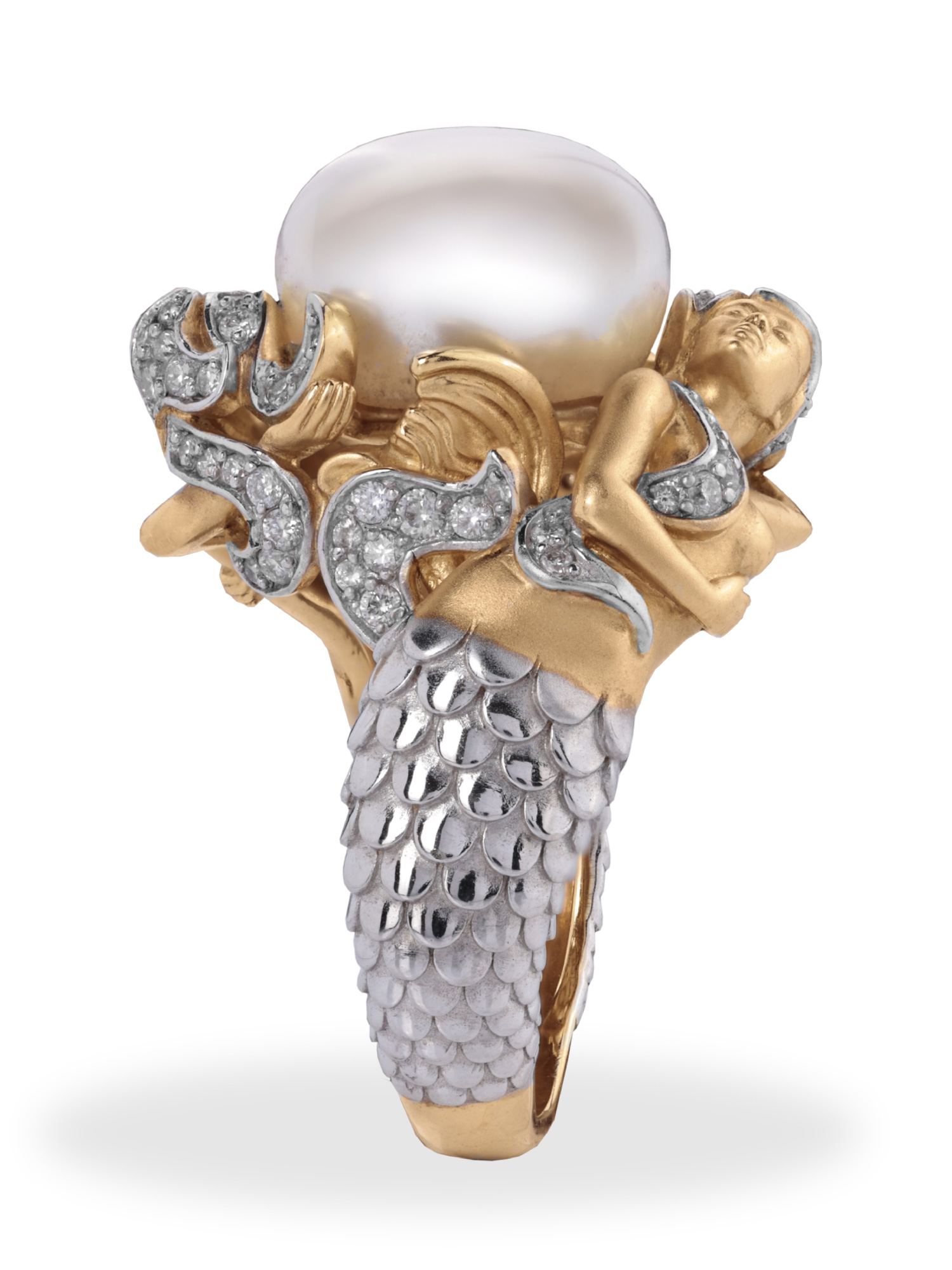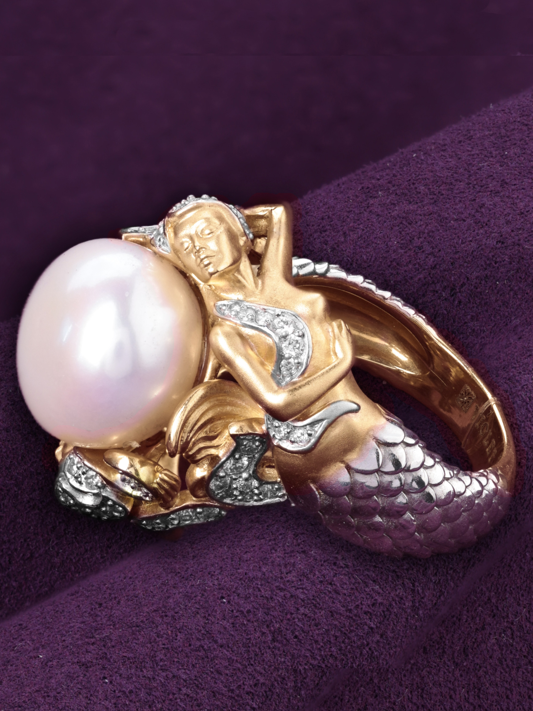 Кольцо из золота c бриллиантами и жемчугом