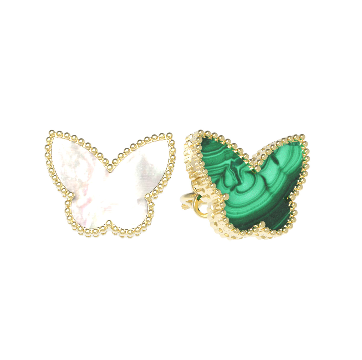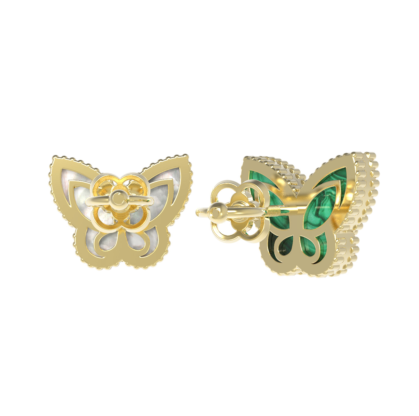 Серьги из лимонного золота c малахитом и перламутром