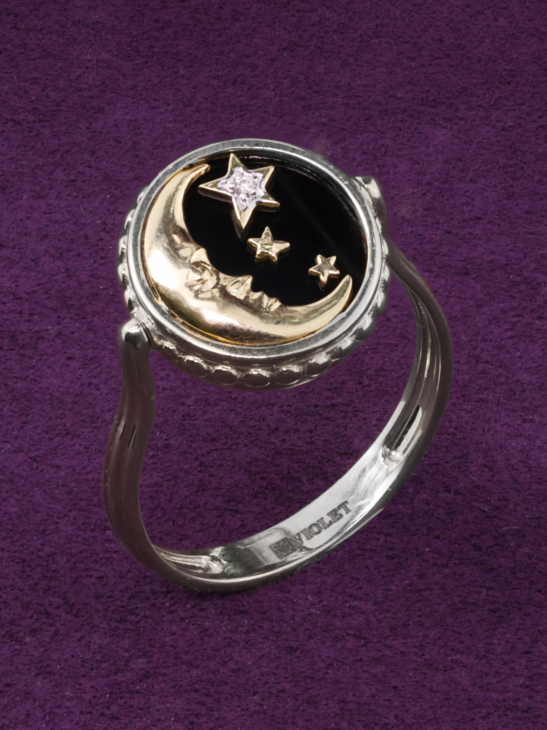 Кольцо из белого золота c бриллиантами, ониксом и перламутром